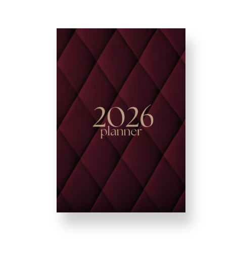 Deep, dramatic, and endlessly luxe—just like the life it’s built to hold. The 2026 Planner Signature Velvet Noir Lattice features a rich maroon-black base, quilted with a sculptural lattice pattern that mimics the depth and texture of velvet. It’s indulgence with intention, a planner that commands presence while keeping your year in perfect order.