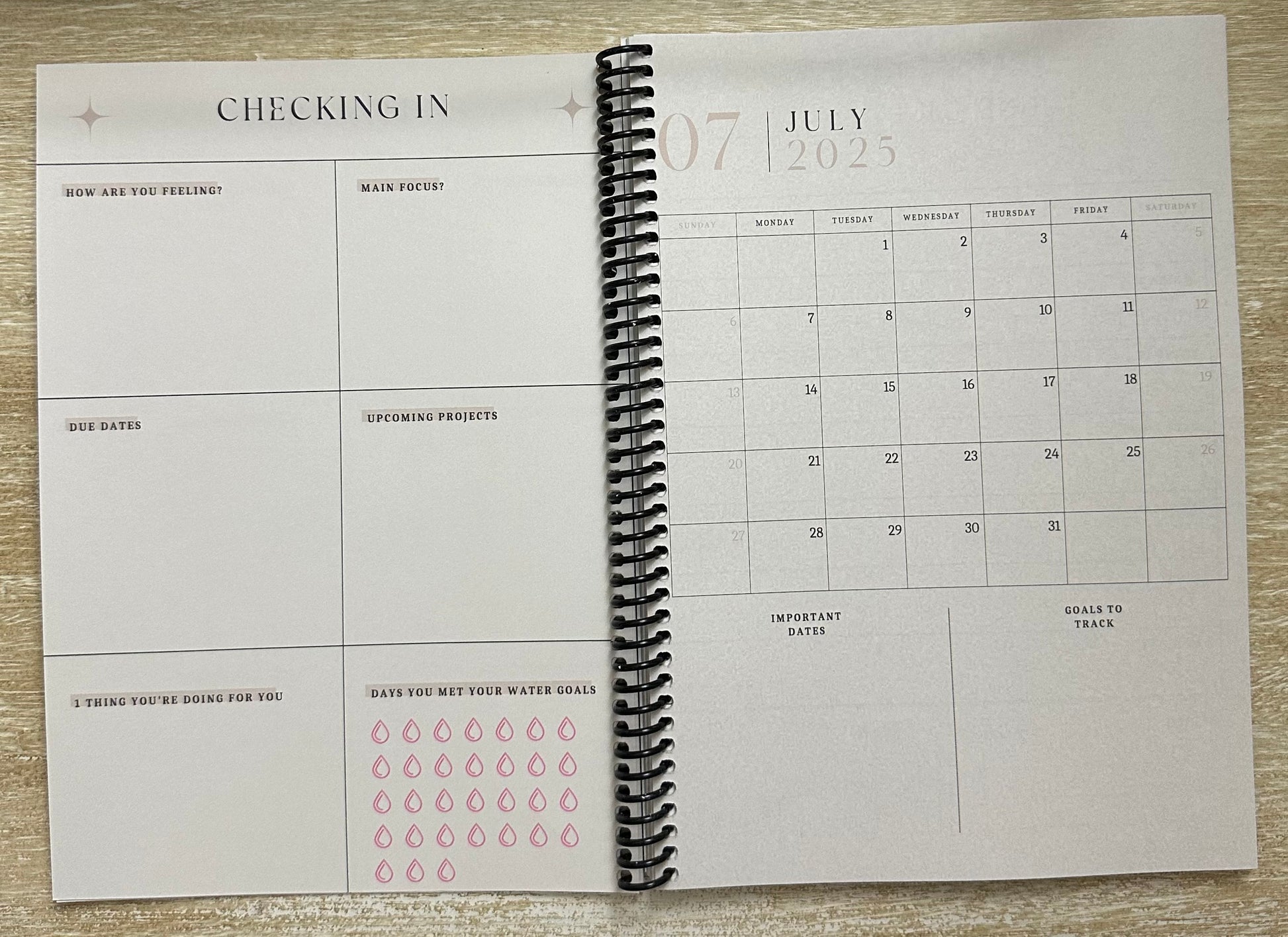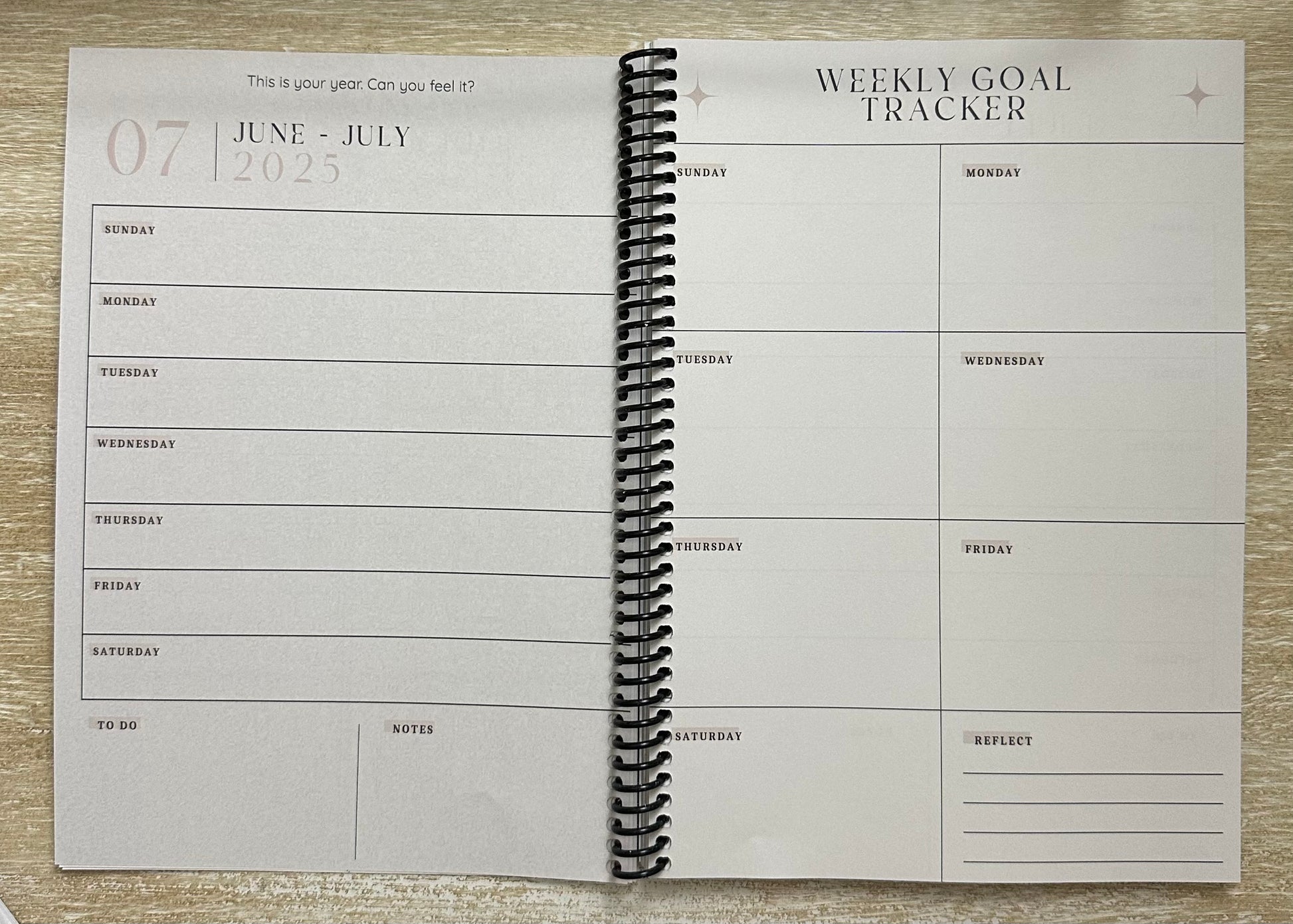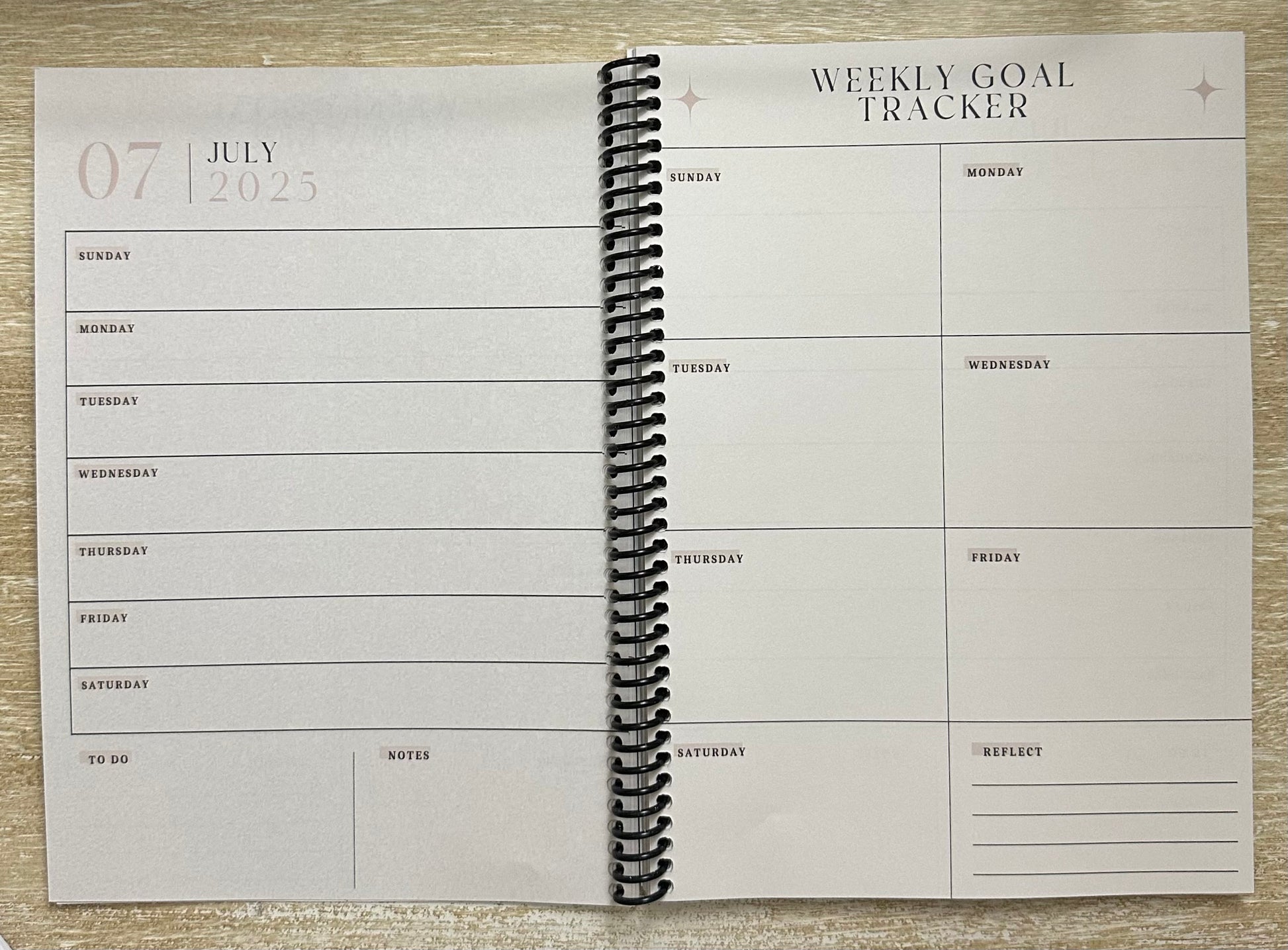 Inside, you’ll find a full year of planning tools, including monthly and weekly layouts, space for goals and notes, and a minimalist structure that blends seamlessly into your routine.