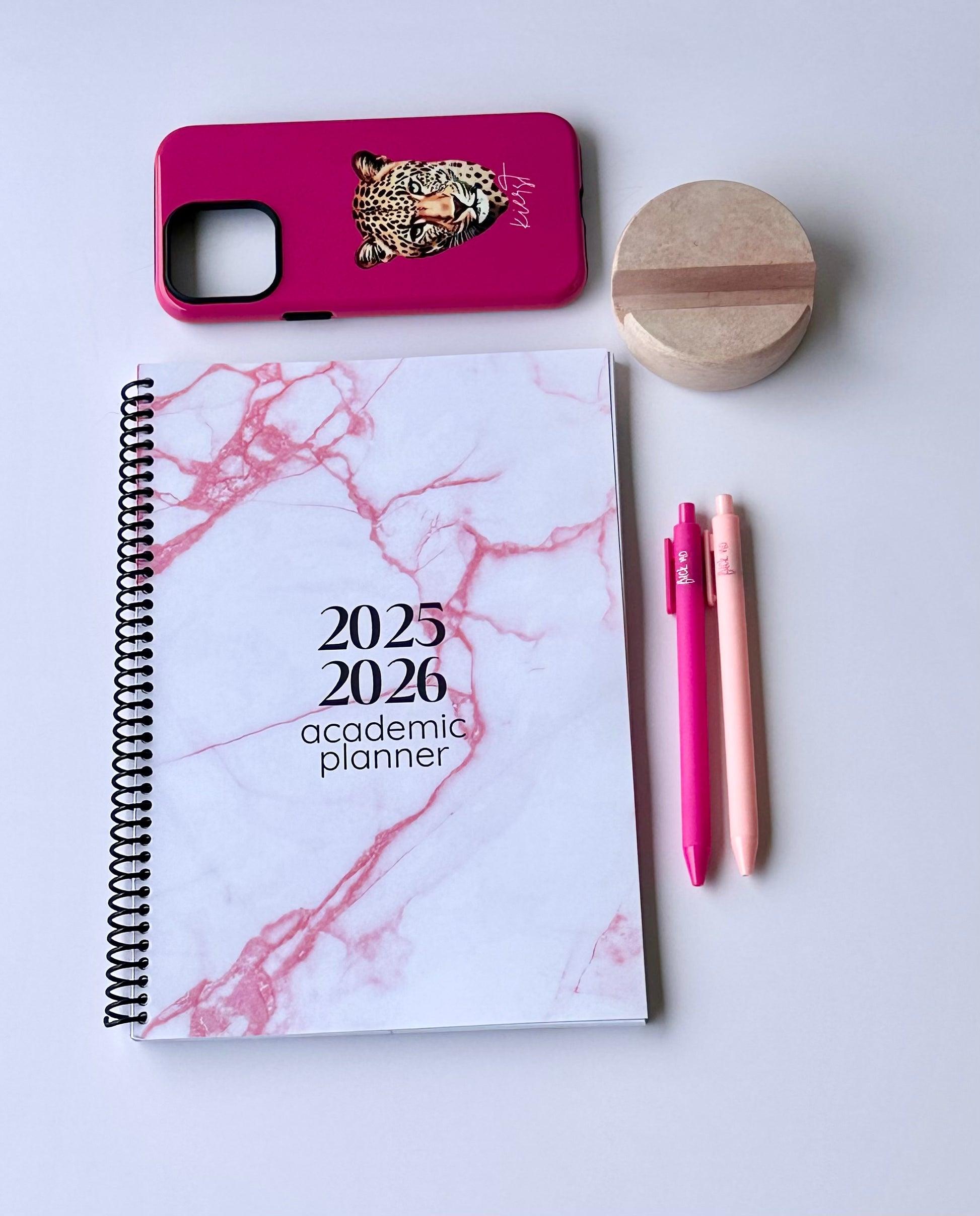 Soft, stunning, and beautifully grounded—just like the woman using it. The Academic Year Planner in Pink Marble features gentle rose veining on a crisp white backdrop, making it a delicate yet impactful addition to your desk or bag. This is calm confidence, captured in print.
