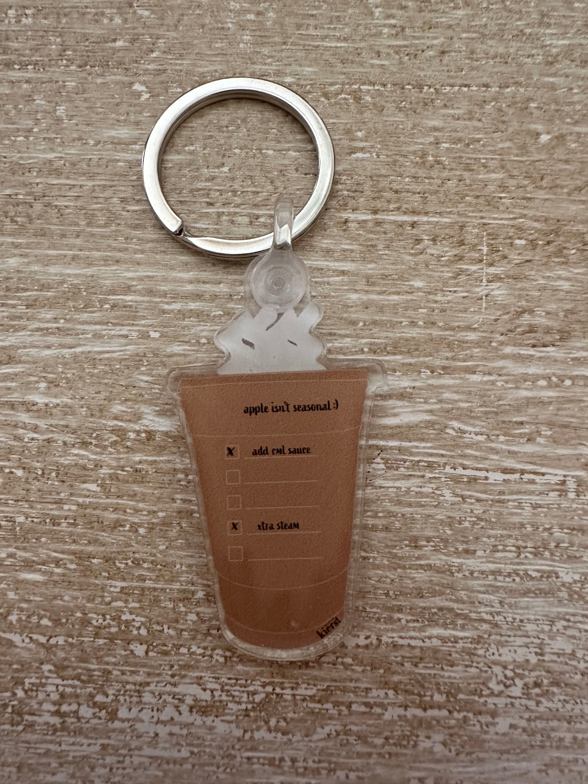 Celebrate the charm of apple season year-round with our Apple Cider Keychain. Hand-drawn to capture the cozy warmth of a café-inspired label, it features playful details like “add cml sauce” and “xtra steam,” with light grey steam rising from the cup. A subtle yet fun accessory, this keychain is designed for apple lovers and anyone who craves a touch of everyday comfort.