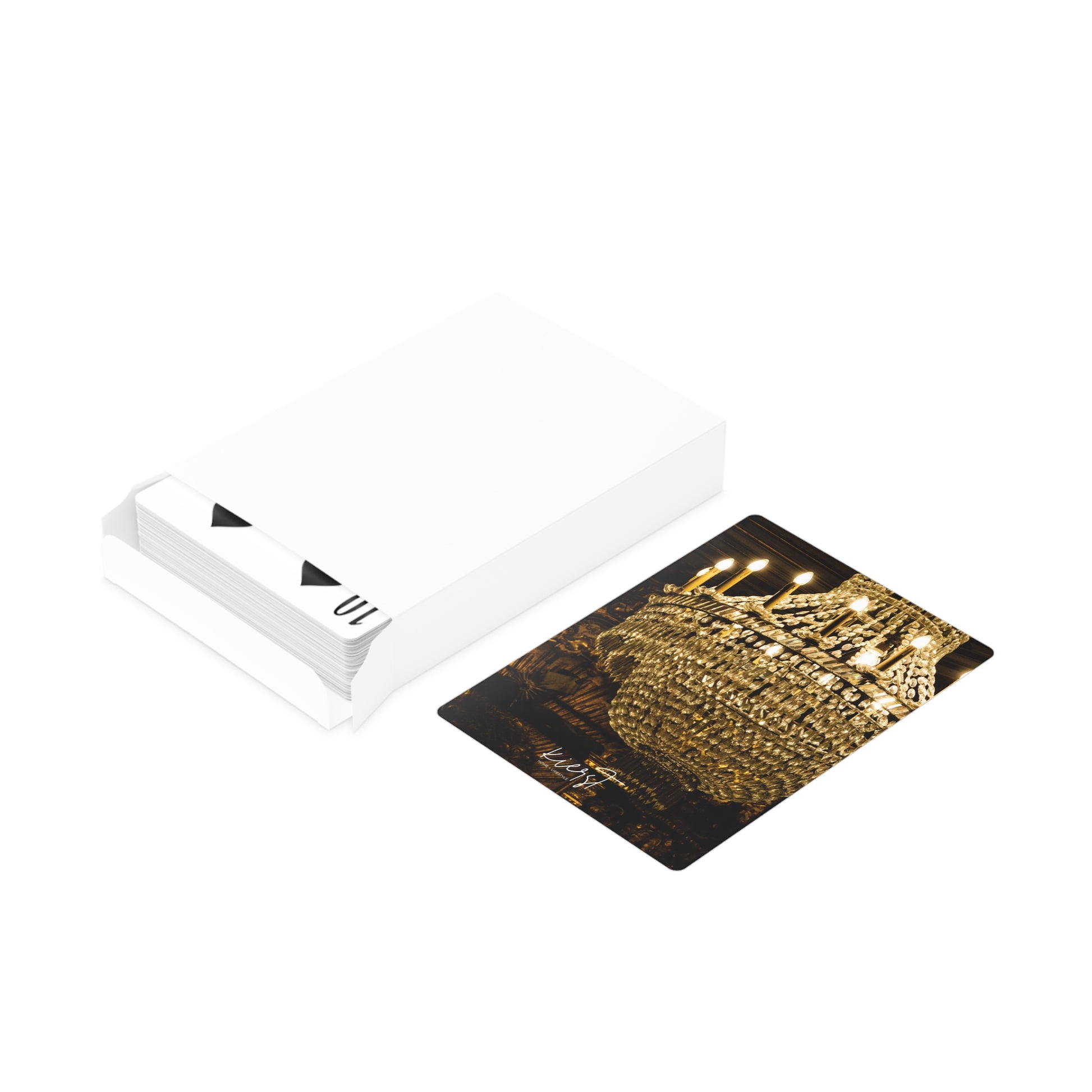 Opulence in the palm of your hand. The Baroque Chandelier Poker Playing Cards capture the drama and grandeur of gilded light, transforming every game into an occasion. Golden tones meet moody contrast for a design that’s bold, timeless, and irresistibly chic.