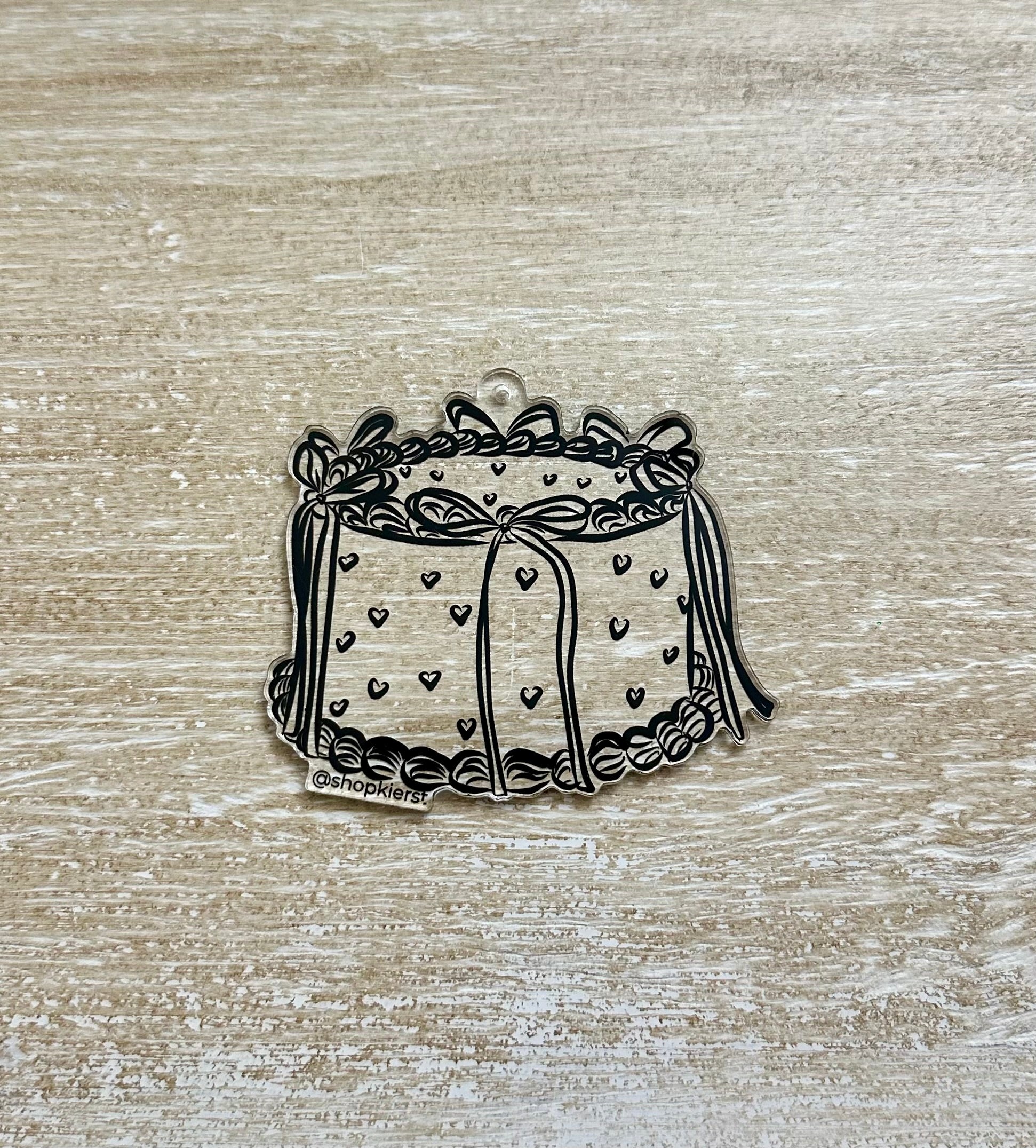 Playful yet poised — The Black Bow Heart Cake Ornament brings a touch of couture charm to your everyday style. Hand-illustrated with braided frosting edges, delicate heart details, and signature black bows, it’s the perfect mix of feminine elegance and subtle edge.