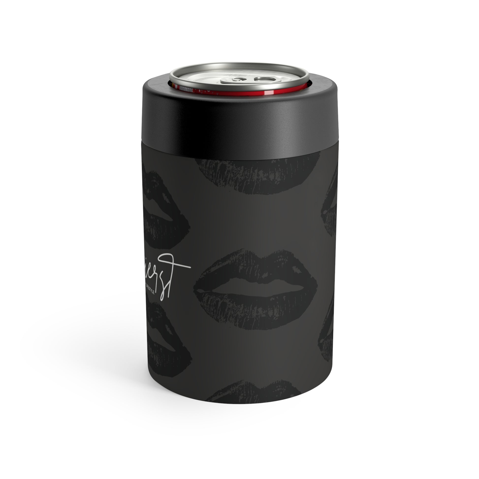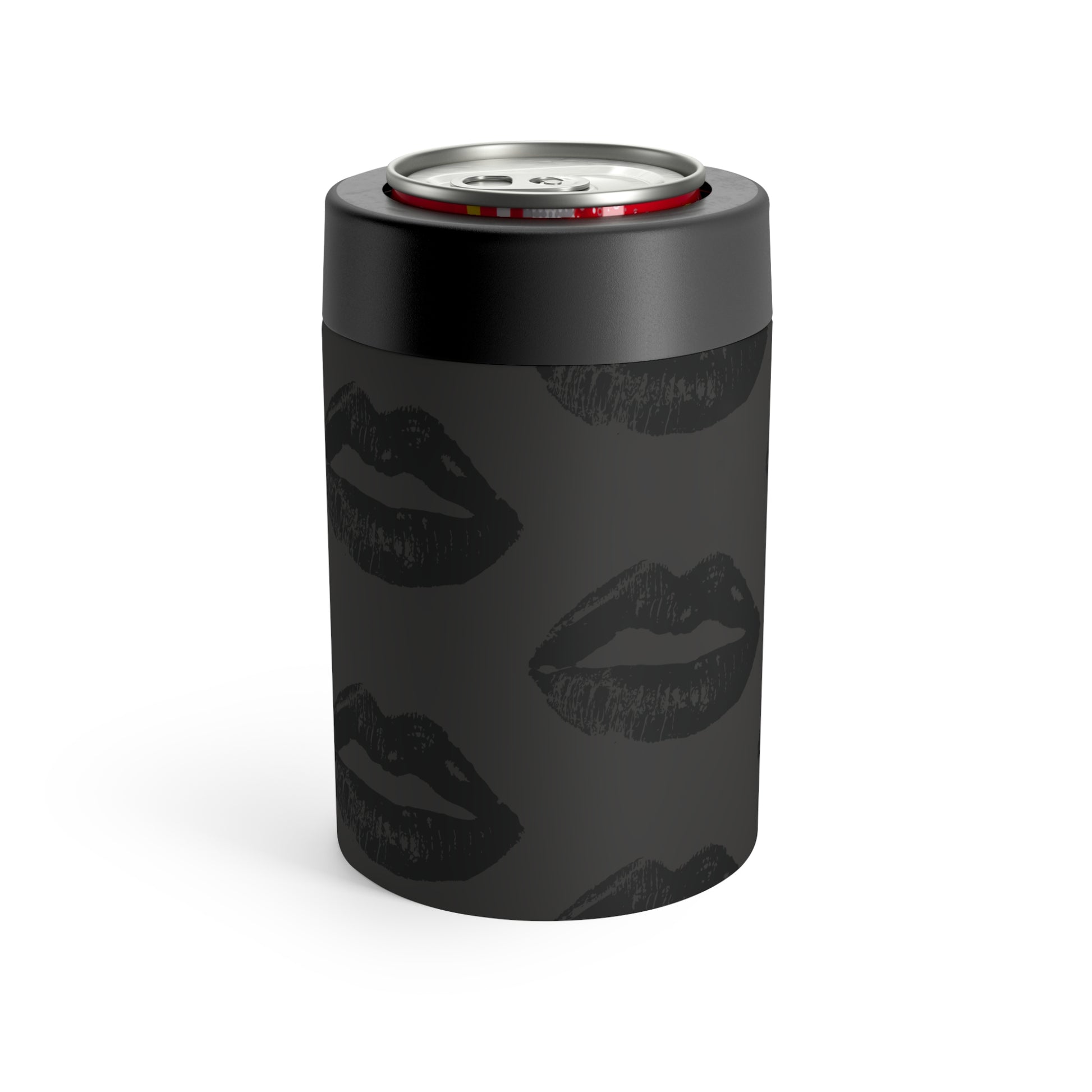 Black Lip Print Can Holder – Charcoal Grey Background