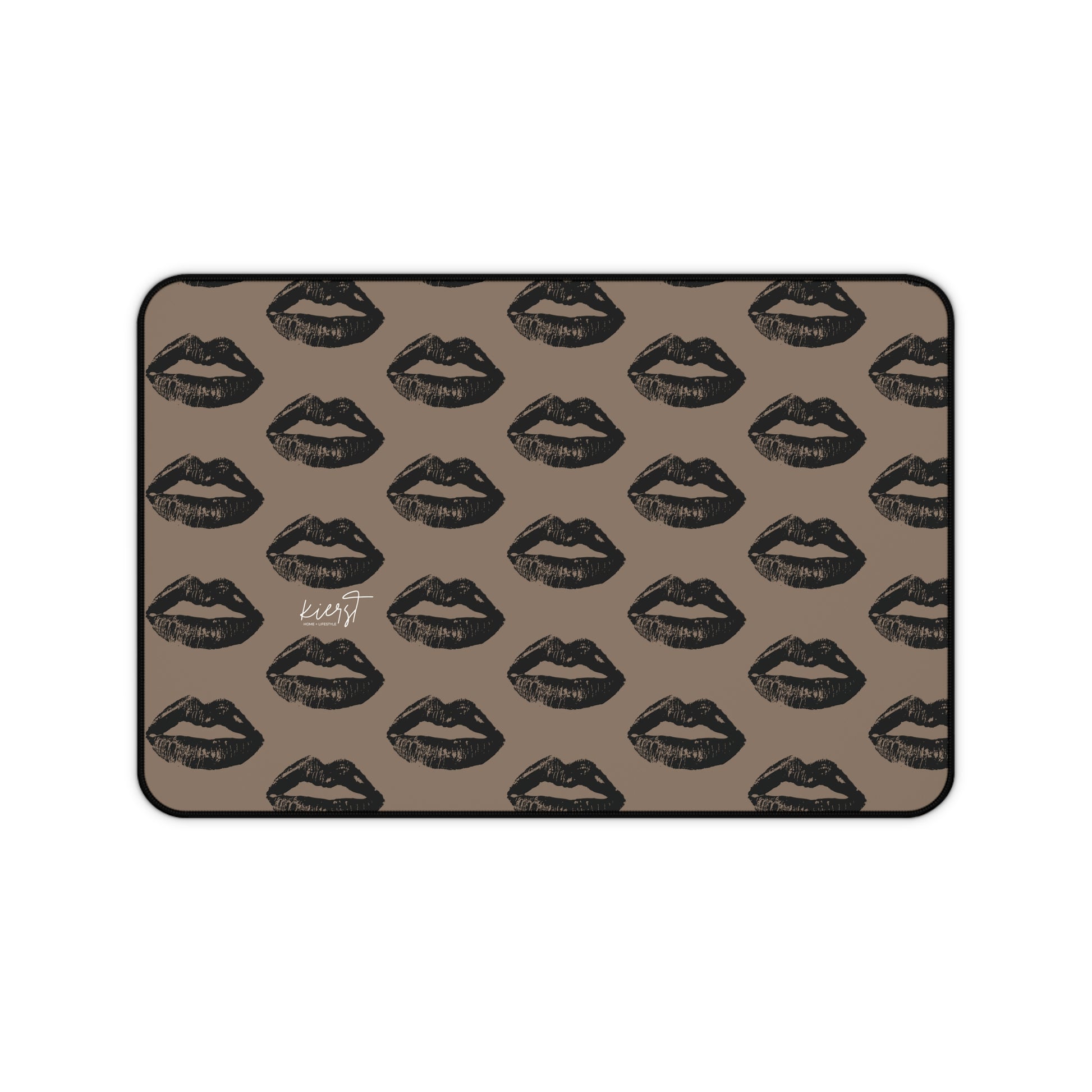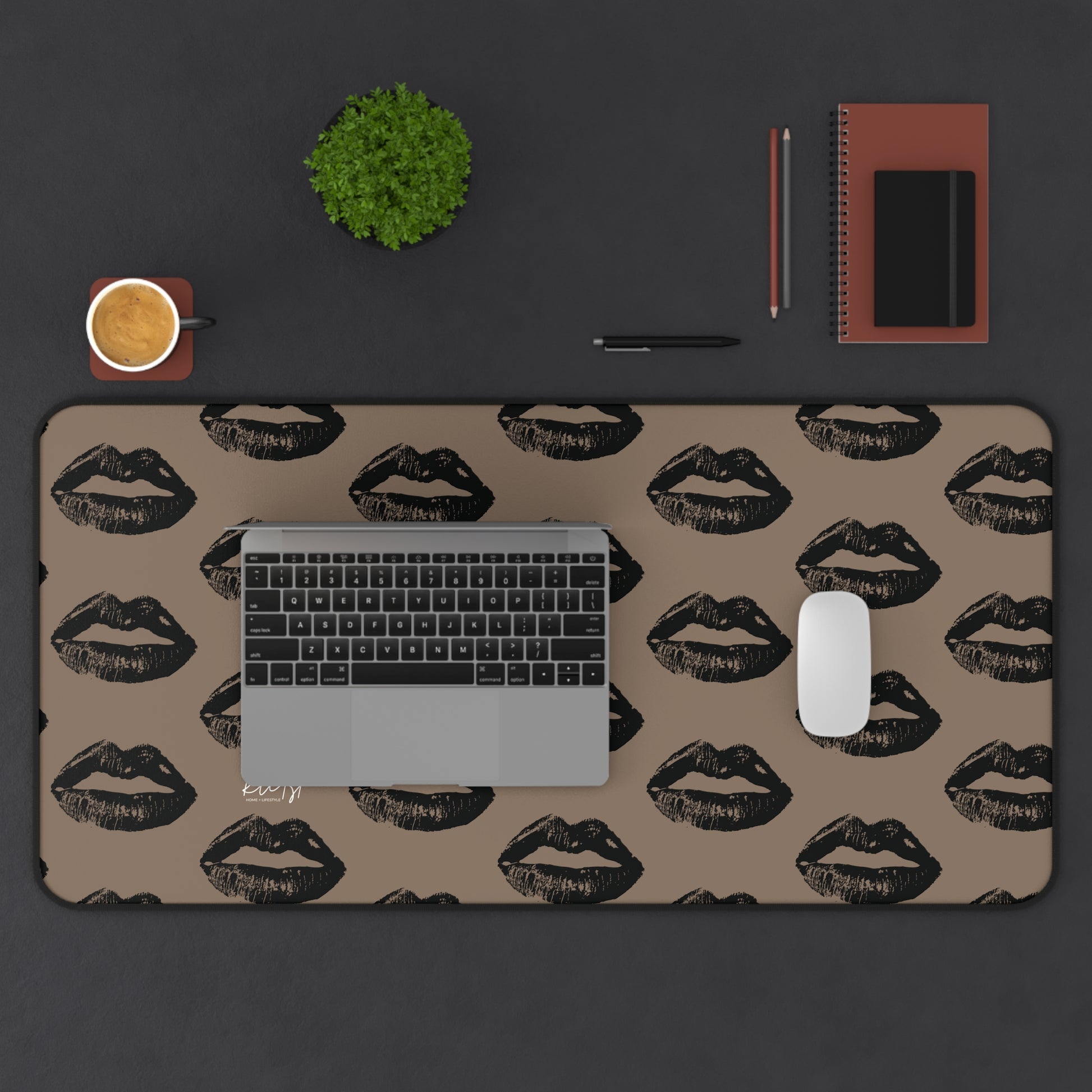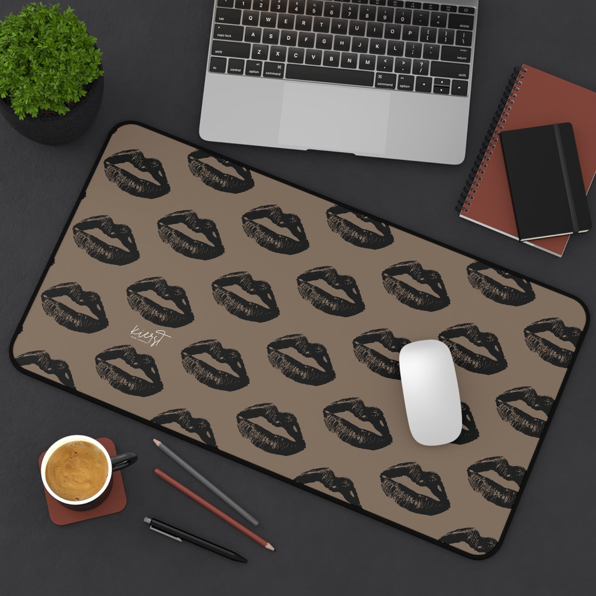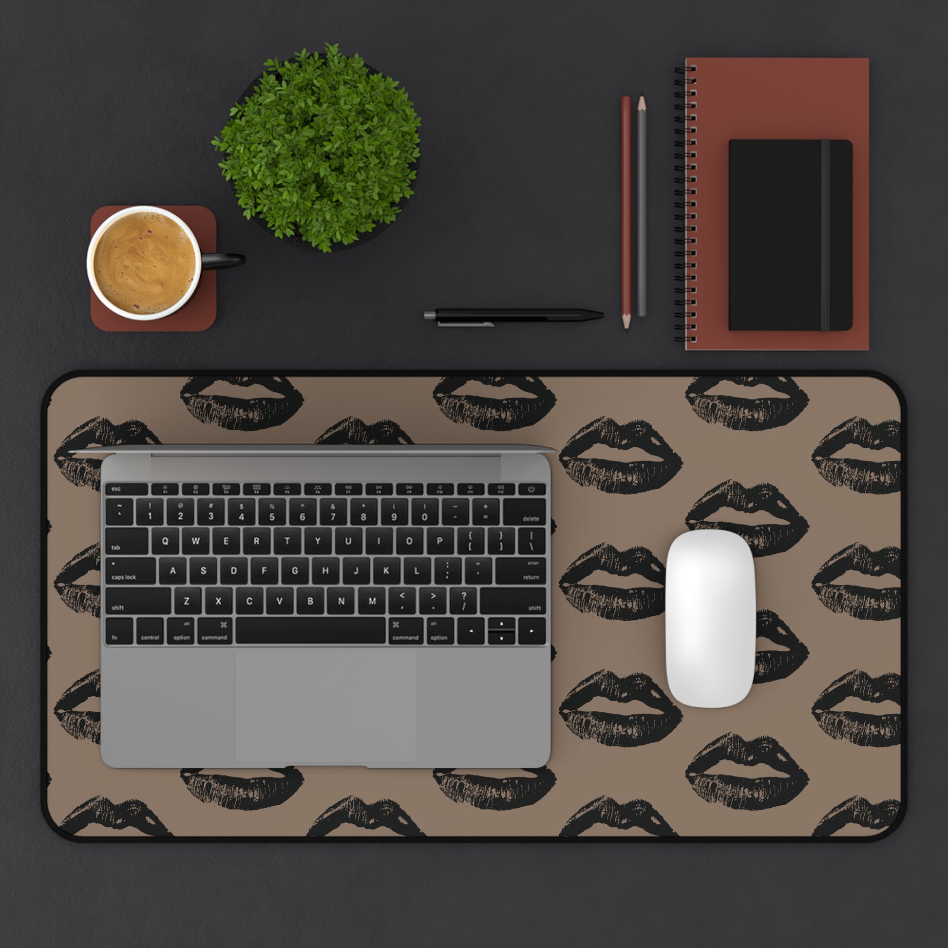 Bring bold sophistication to your workspace with the Black Lips on Mocha Desk Mat. Designed with a luxe mocha backdrop and striking black lips motif, it transforms your desk into a curated statement of style. Crafted for both function and flair, this desk mat adds a layer of protection while elevating everyday tasks.