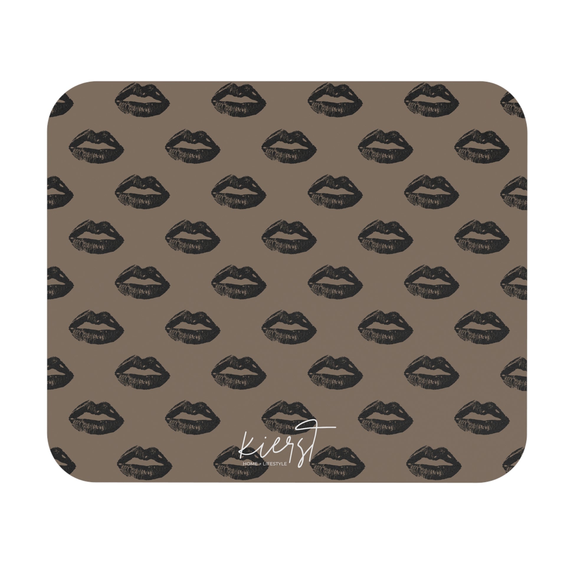 Black Lips on Mocha Mouse Pad | Bold Meets Sophistication