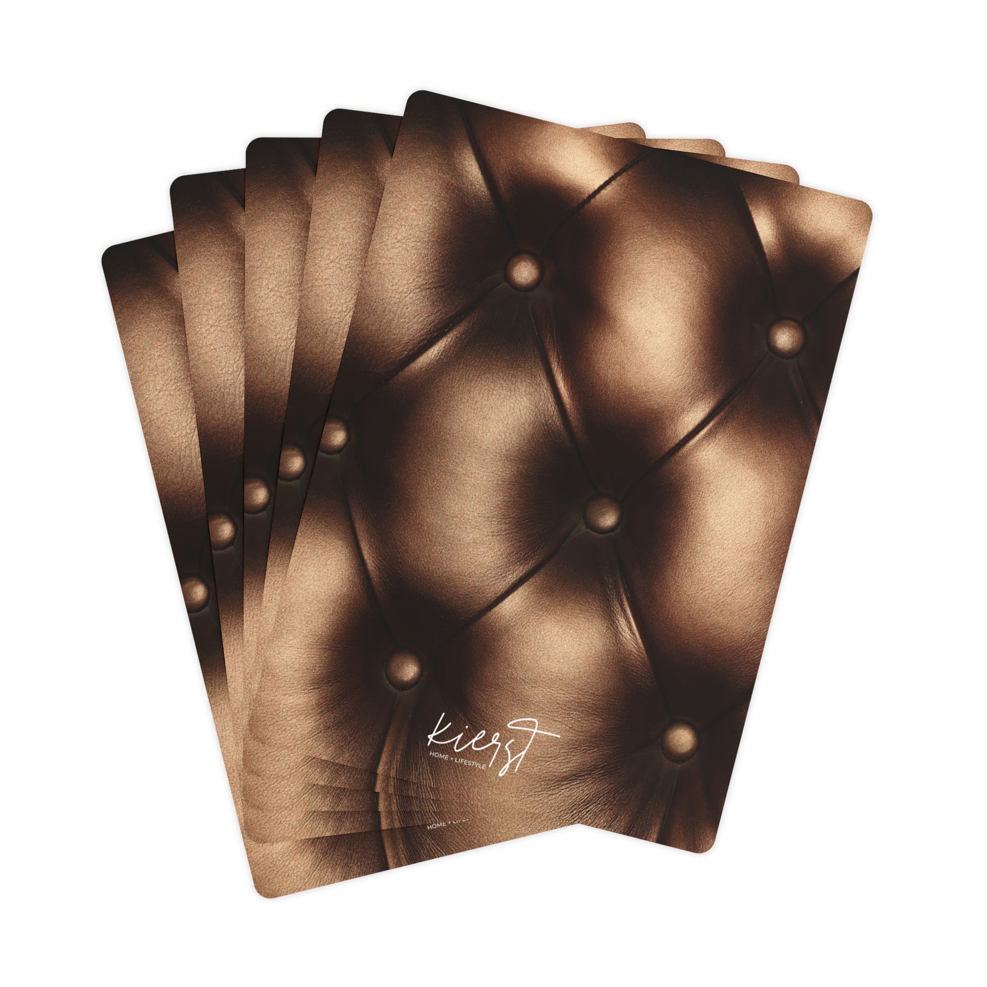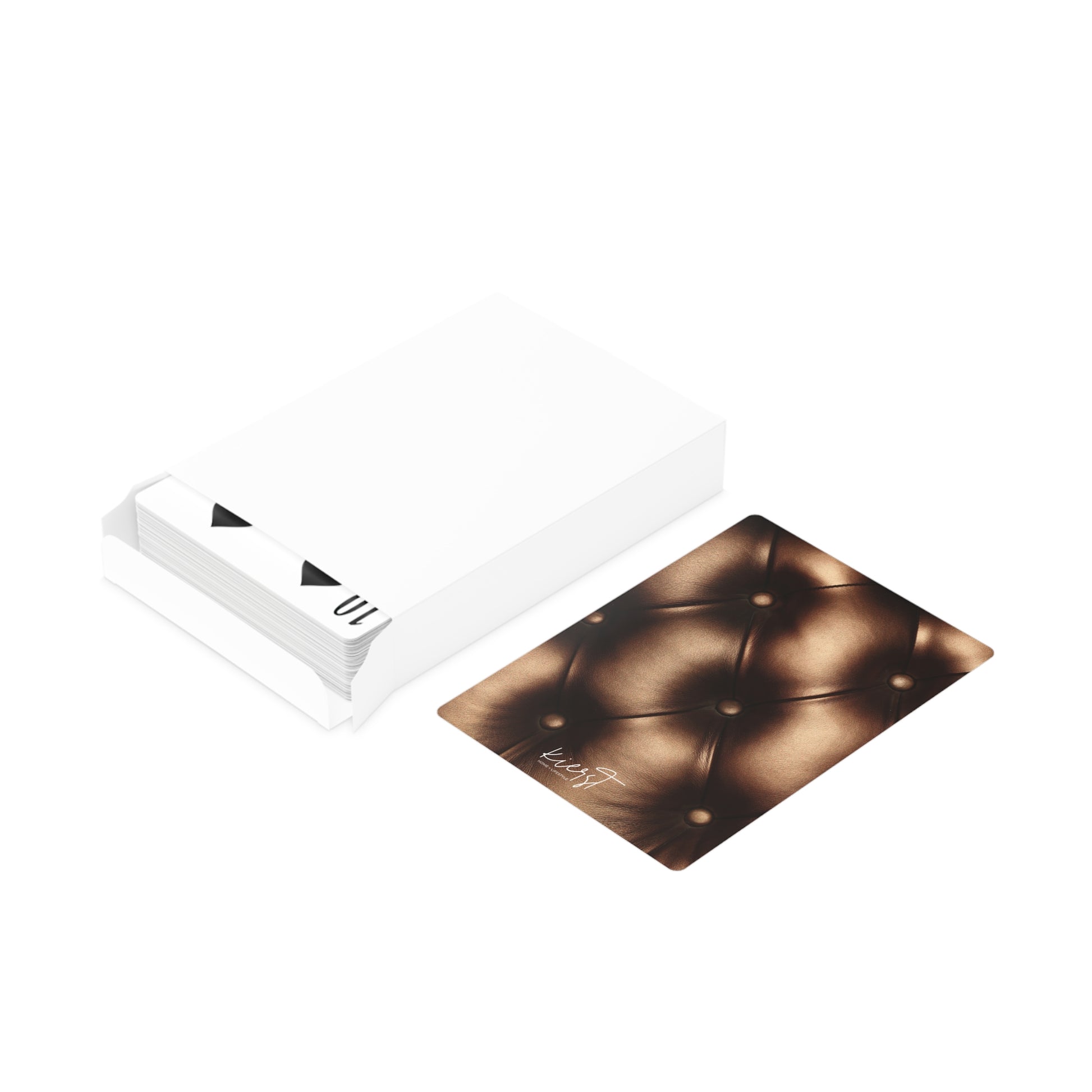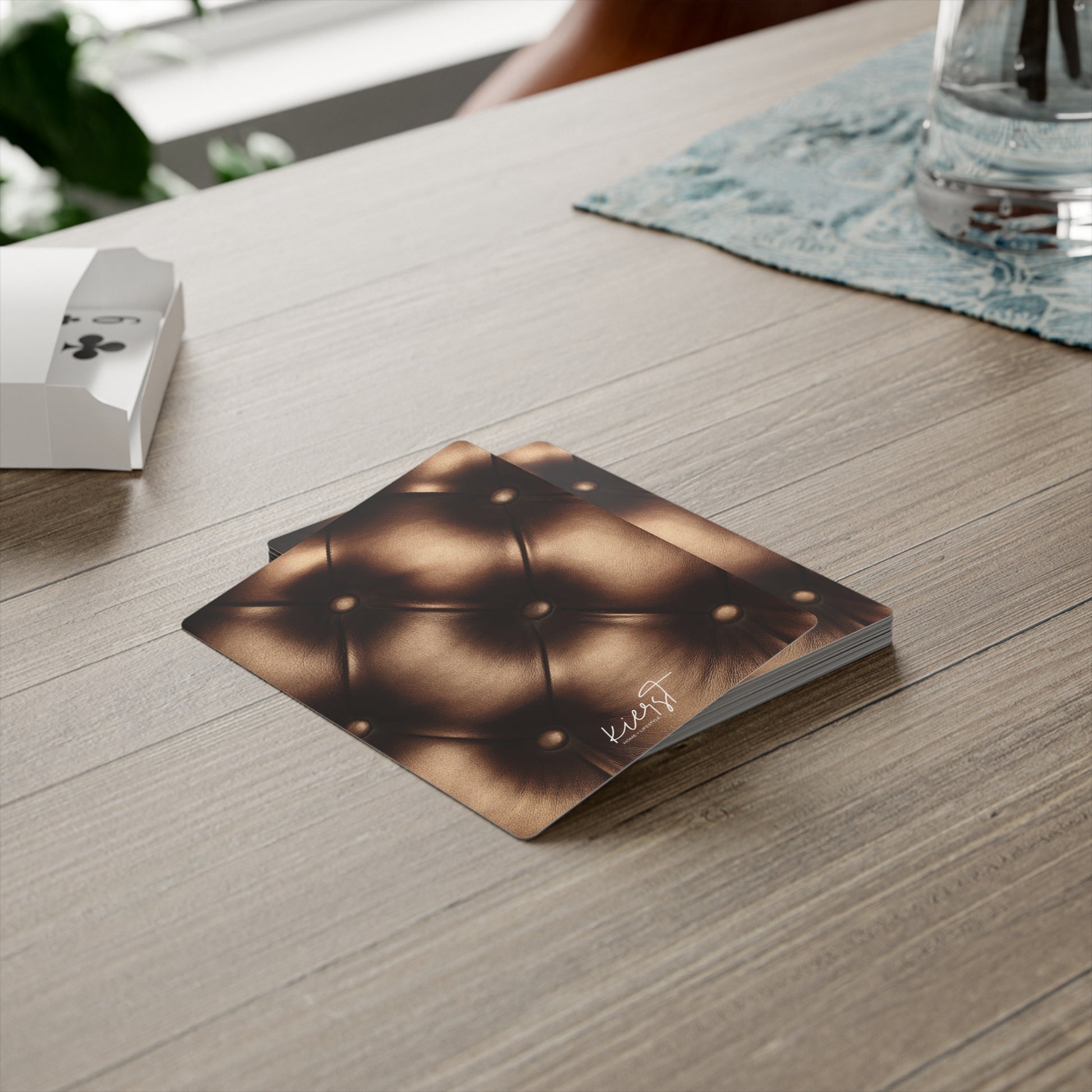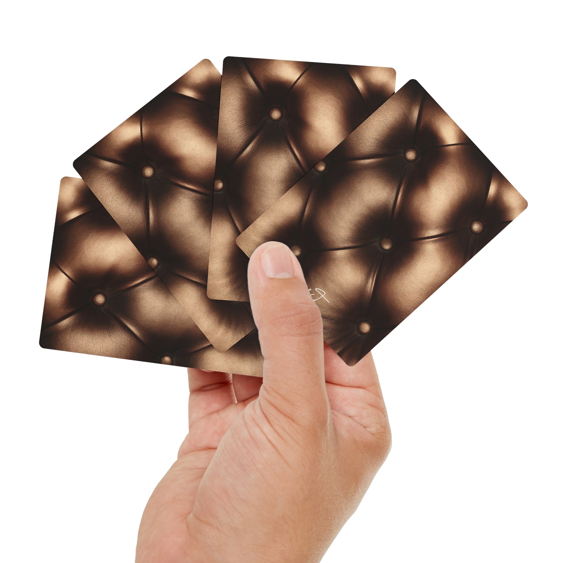 Opulent and dramatic, the Bronze Tufted Poker Playing Cards channel the elegance of classic upholstery with a modern edge. The rich bronze sheen and tufted detailing create a luxe, dimensional design that turns every game into a statement of style.