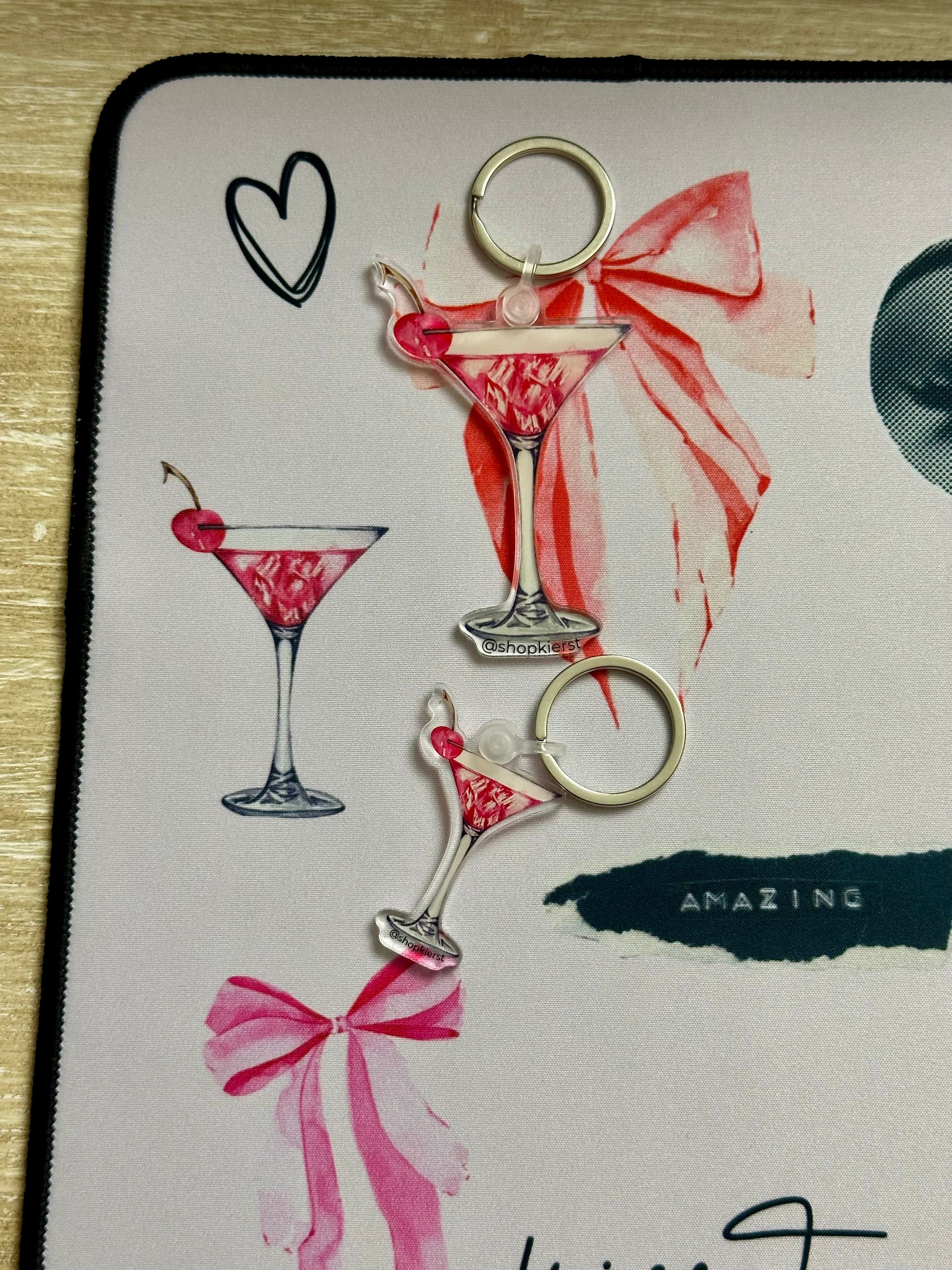 The Cherry & Cosmo Ornament + Keychain captures the timeless allure of a night out — the clink of glass, the soft glow of candlelight, and that unmistakable feeling of being exactly where you belong. With watercolor hues and a cherry-topped finish, it’s a nod to effortless glamour and modern indulgence.