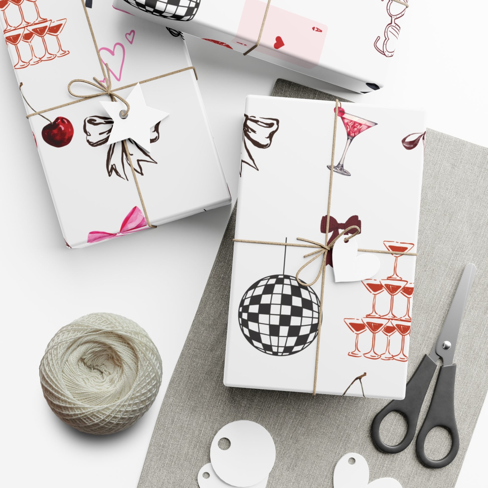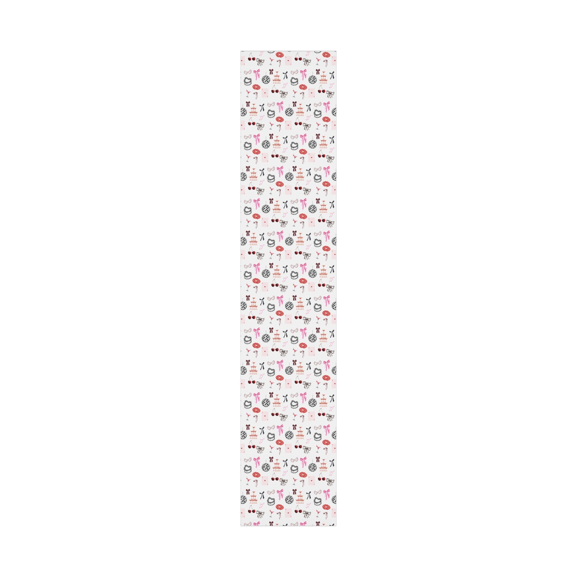 Playfully elegant, the Grey Edge of Romance Gift Wrap brings a flirty twist to gifting with its illustrated mix of bows, lips, heels, and champagne glasses. A soft grey base anchors pops of pink and red for a look that’s effortlessly glamorous and modern.