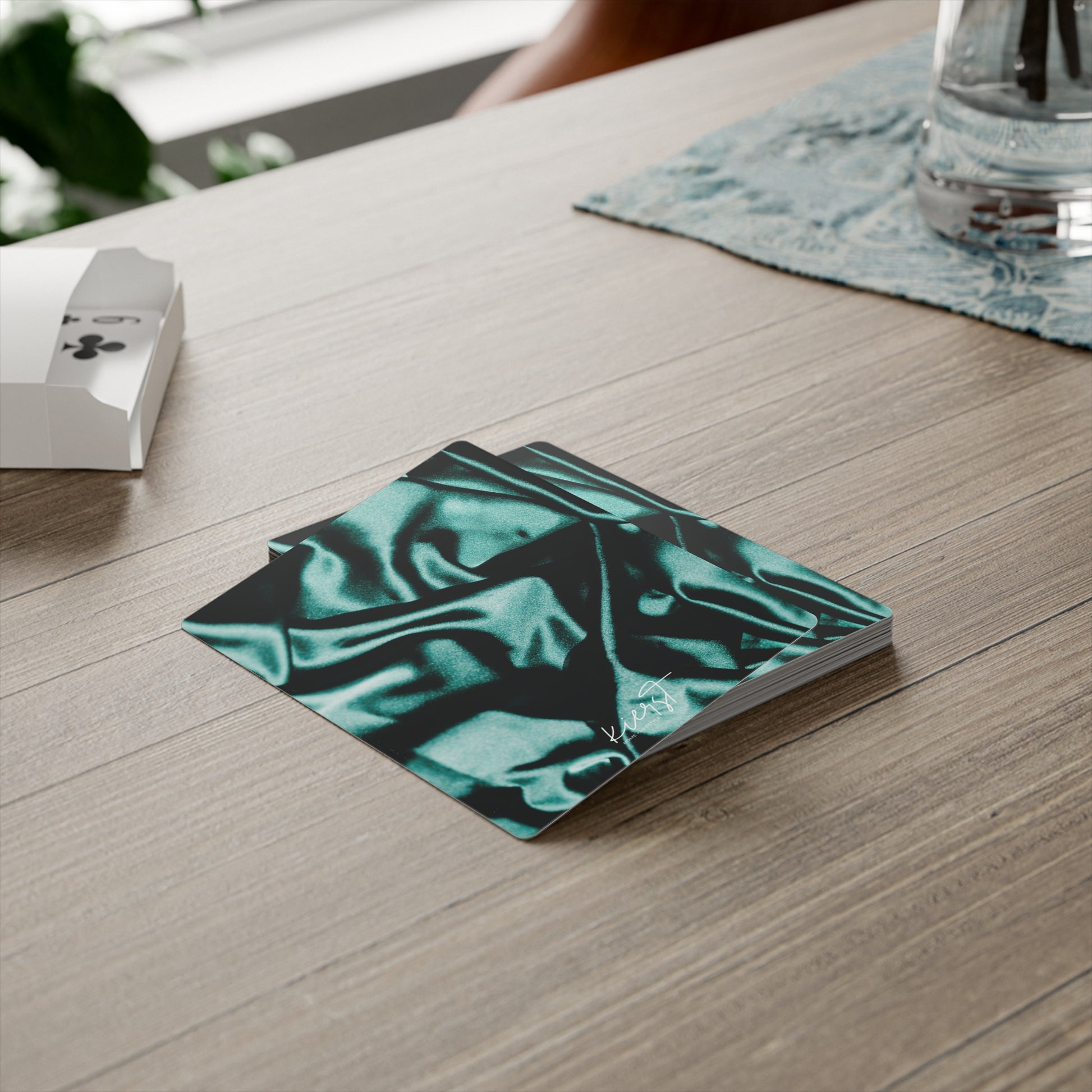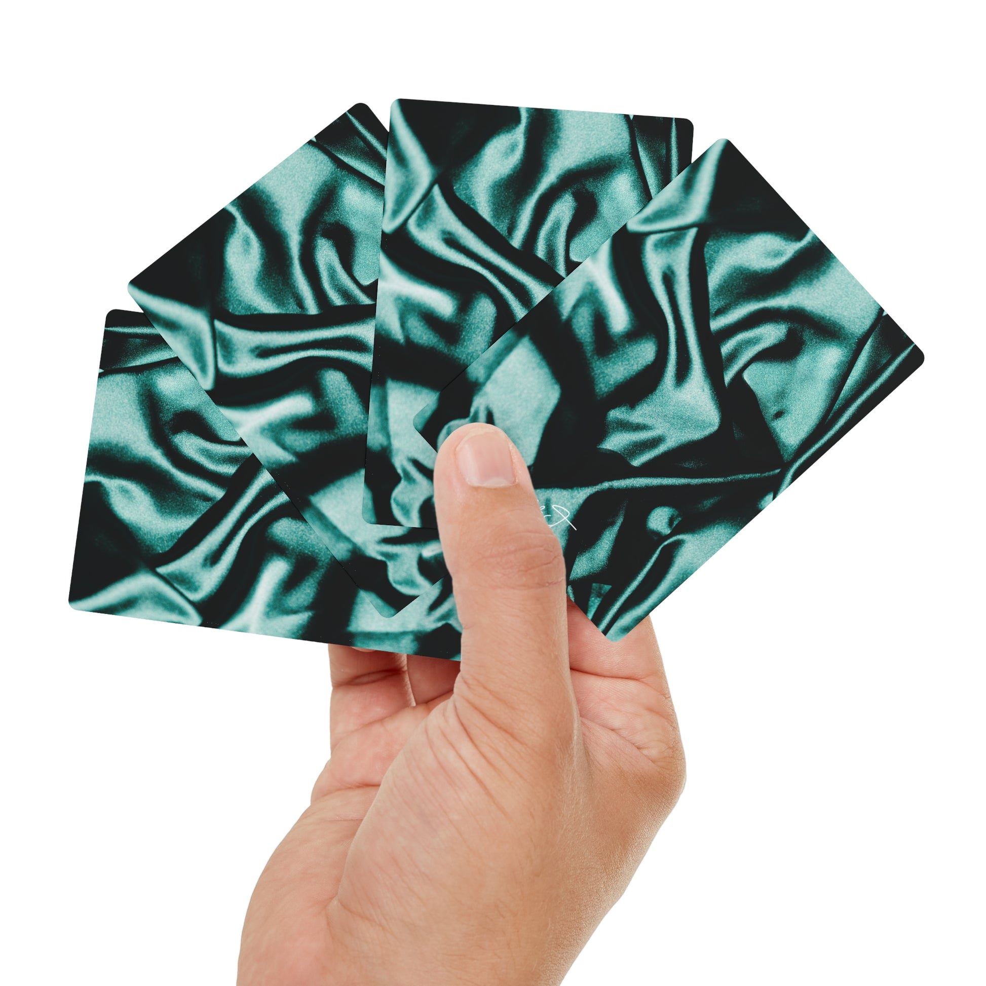 Lustrous and striking, the Emerald Silk Poker Playing Cards bring a touch of couture glamour to every shuffle. The fluid silk-inspired design in deep emerald tones captures movement and luxury, making this deck both bold and timeless. Perfect for those who see style in every detail.
