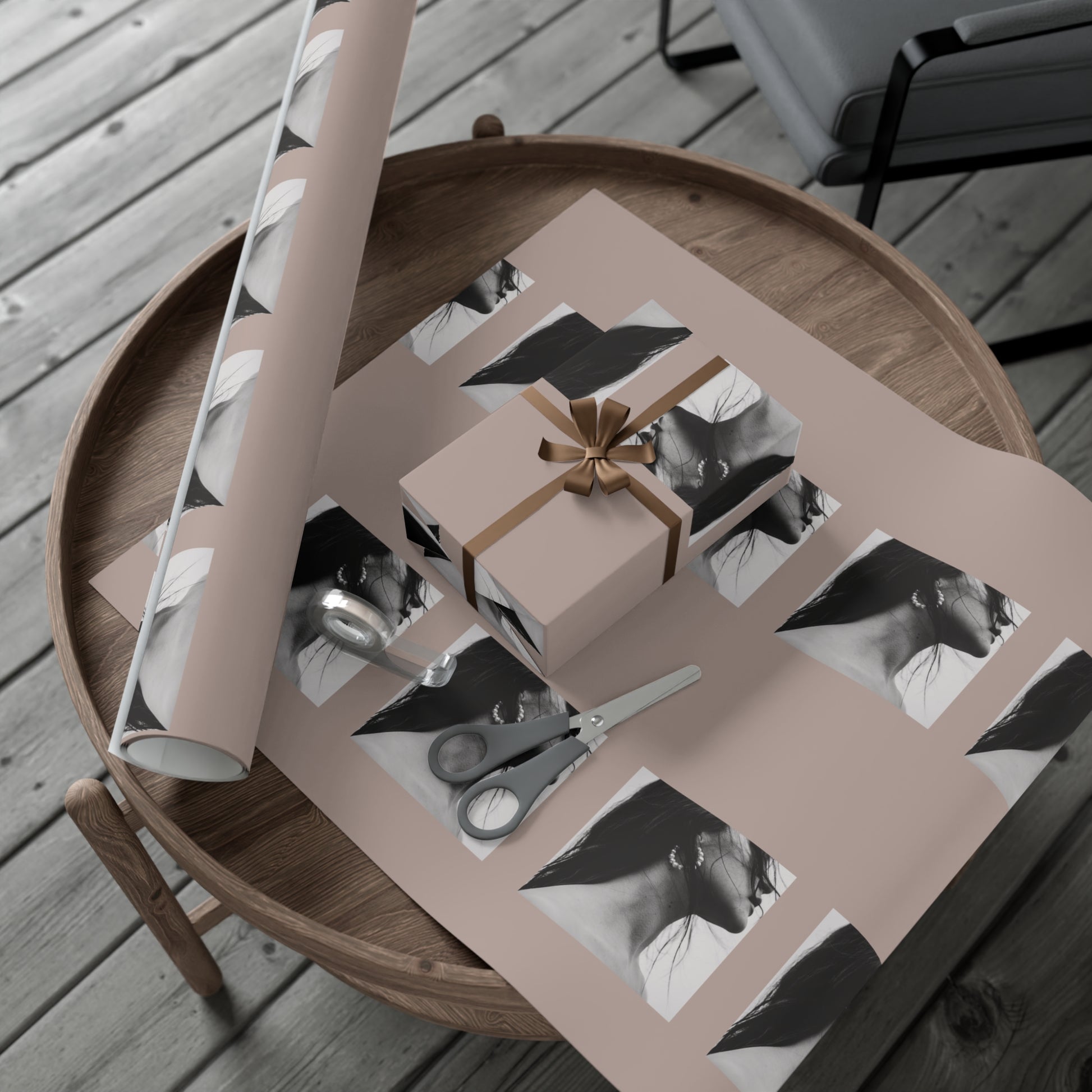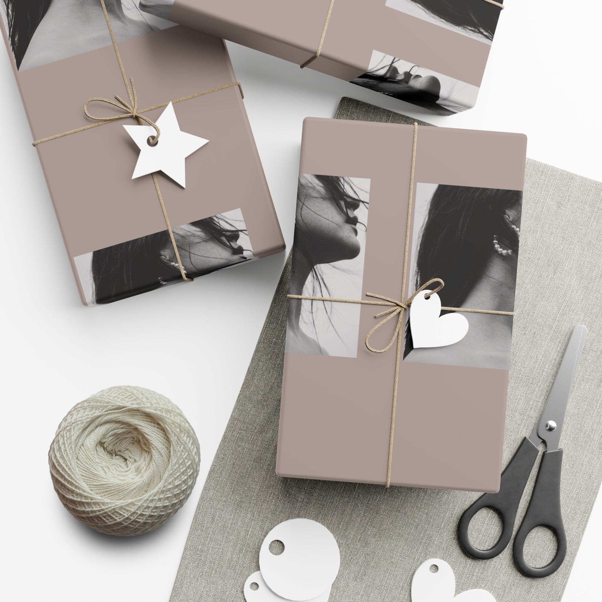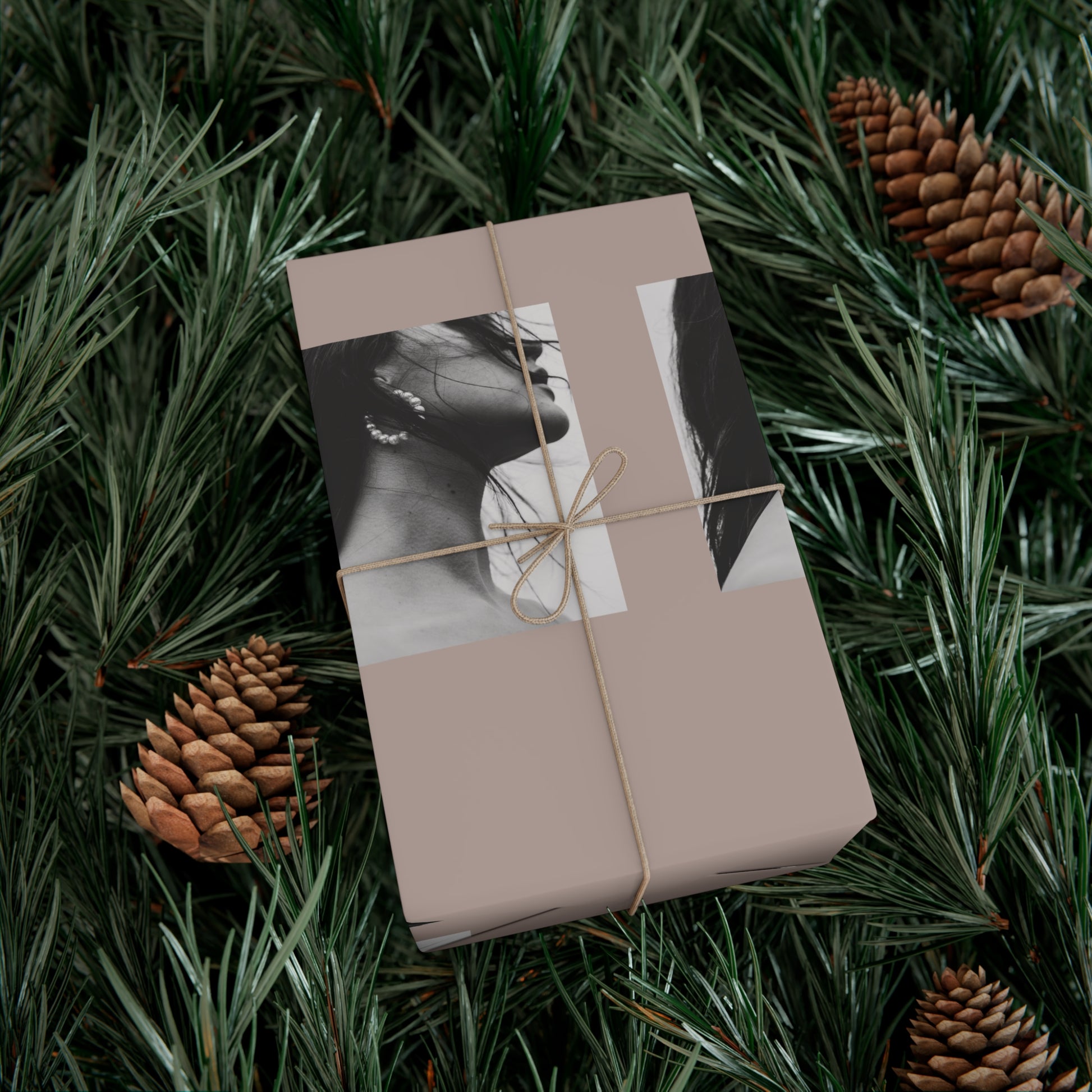 Striking yet timeless, the Black + White Fashion Portrait Wrap adds editorial sophistication to every gift. Featuring elegant monochrome portraits against a warm taupe background, it captures the essence of modern luxury with minimalist flair.