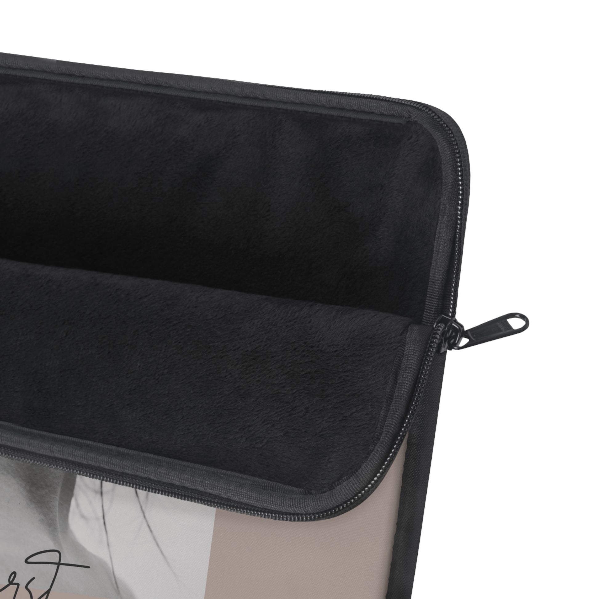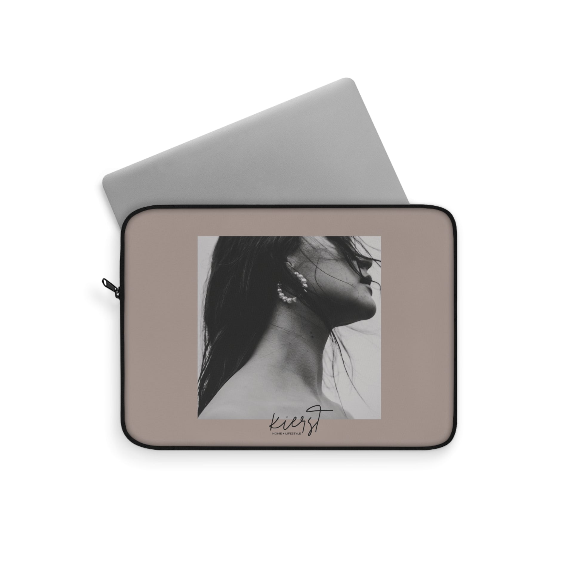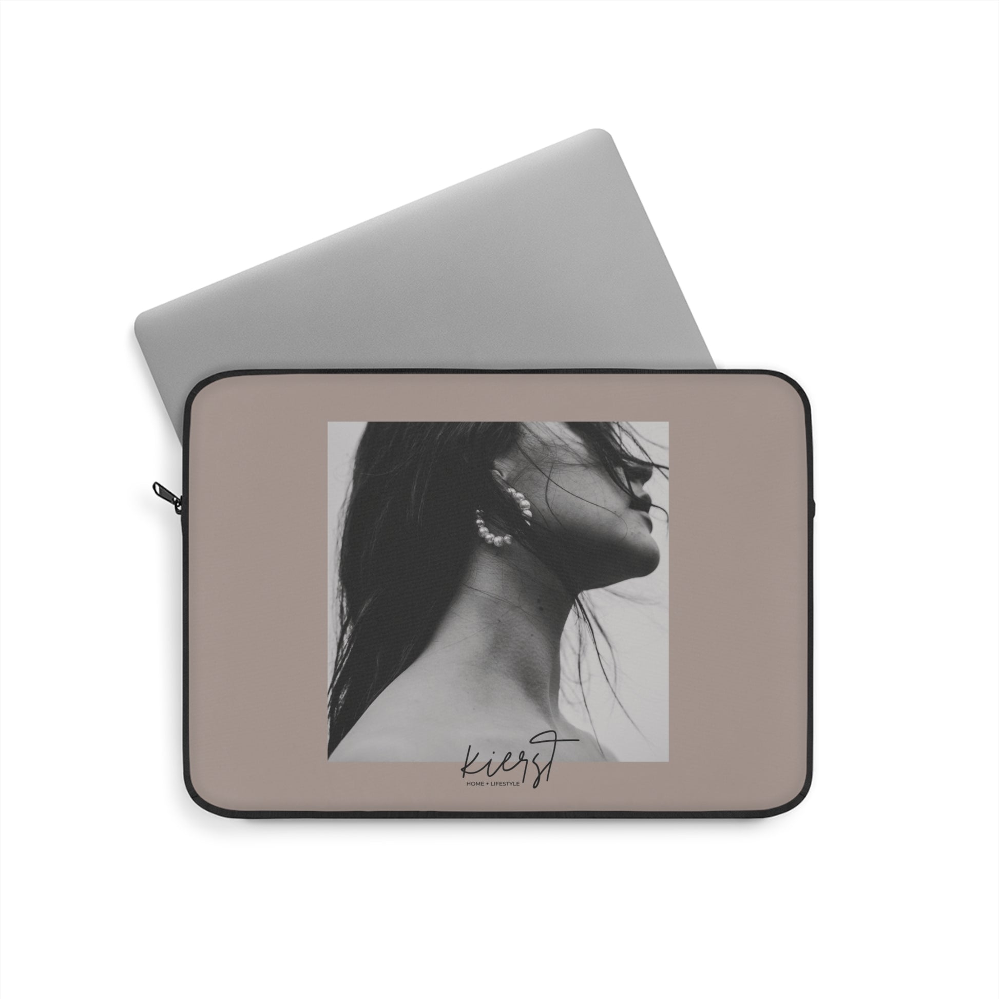 Minimalist and magnetic, this striking laptop sleeve features a black and white fashion portrait on a muted taupe backdrop—perfect for those who see everyday style as an editorial moment.