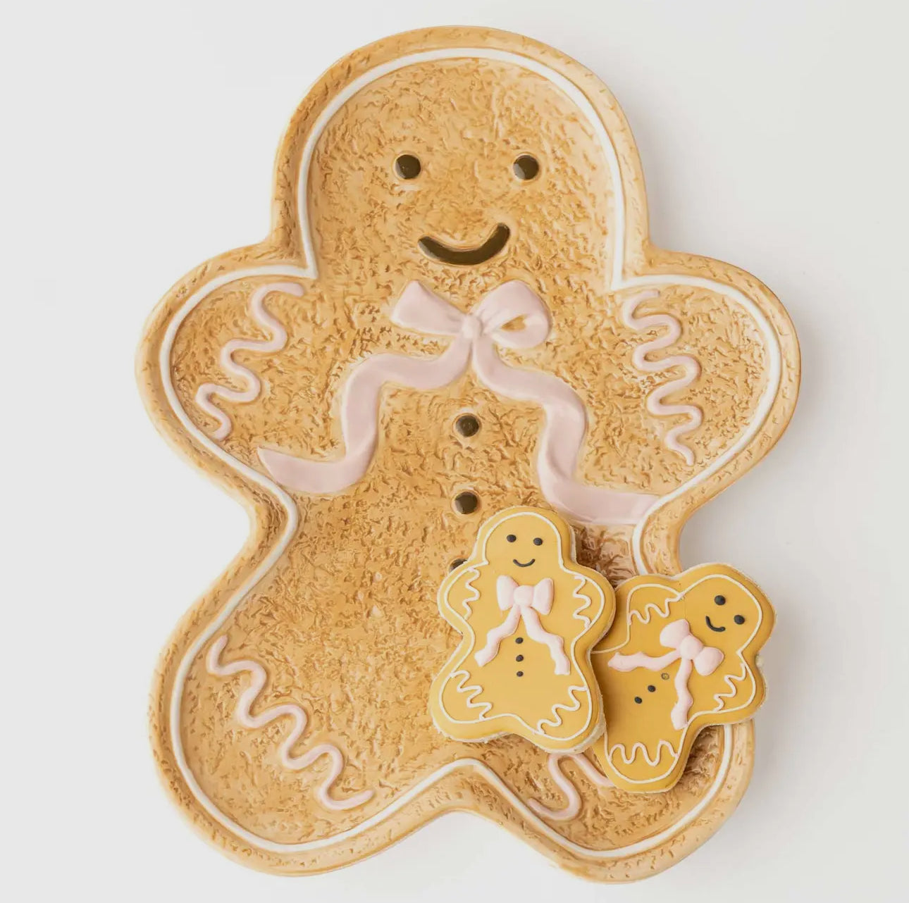 Warm, nostalgic, and irresistibly chic — the Gingerbread Platter is the perfect blend of cozy tradition and kierst sophistication. Handcrafted from ceramic and detailed with soft pink icing and a delicate bow, it turns every serving moment into something sweetly elevated. Available for pre-sale — ships in early November.
