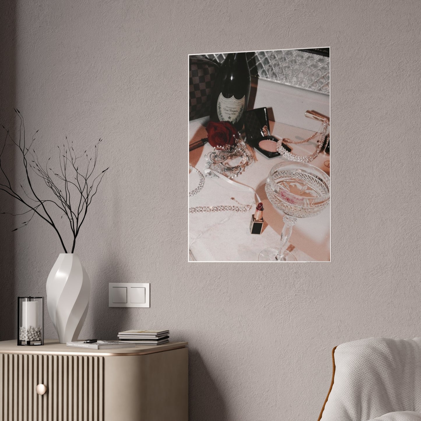 She’s the moment. A cigarette in one hand, headlines in the other, wrapped in a towel like it’s couture—this vintage-style glossy poster is all attitude and aesthetic. Shot with a timeless grain and edited in soft, cinematic tones, Just A Girl is a tribute to unapologetic mornings, independence, and feminine edge.