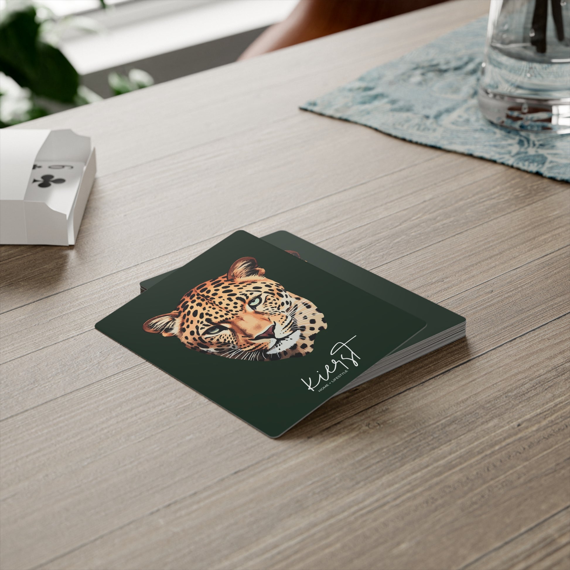 kierst Signature Midnight Pine Poker Playing Cards With Leopard Head