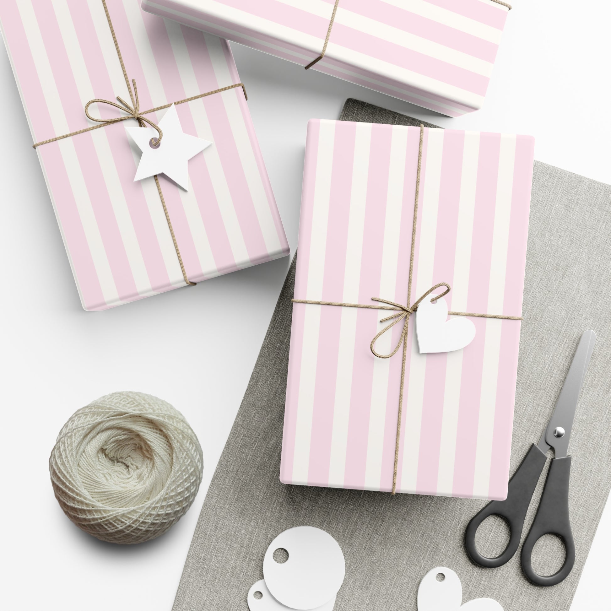 kierst Signature Pink and Cream Striped Wrapping Paper