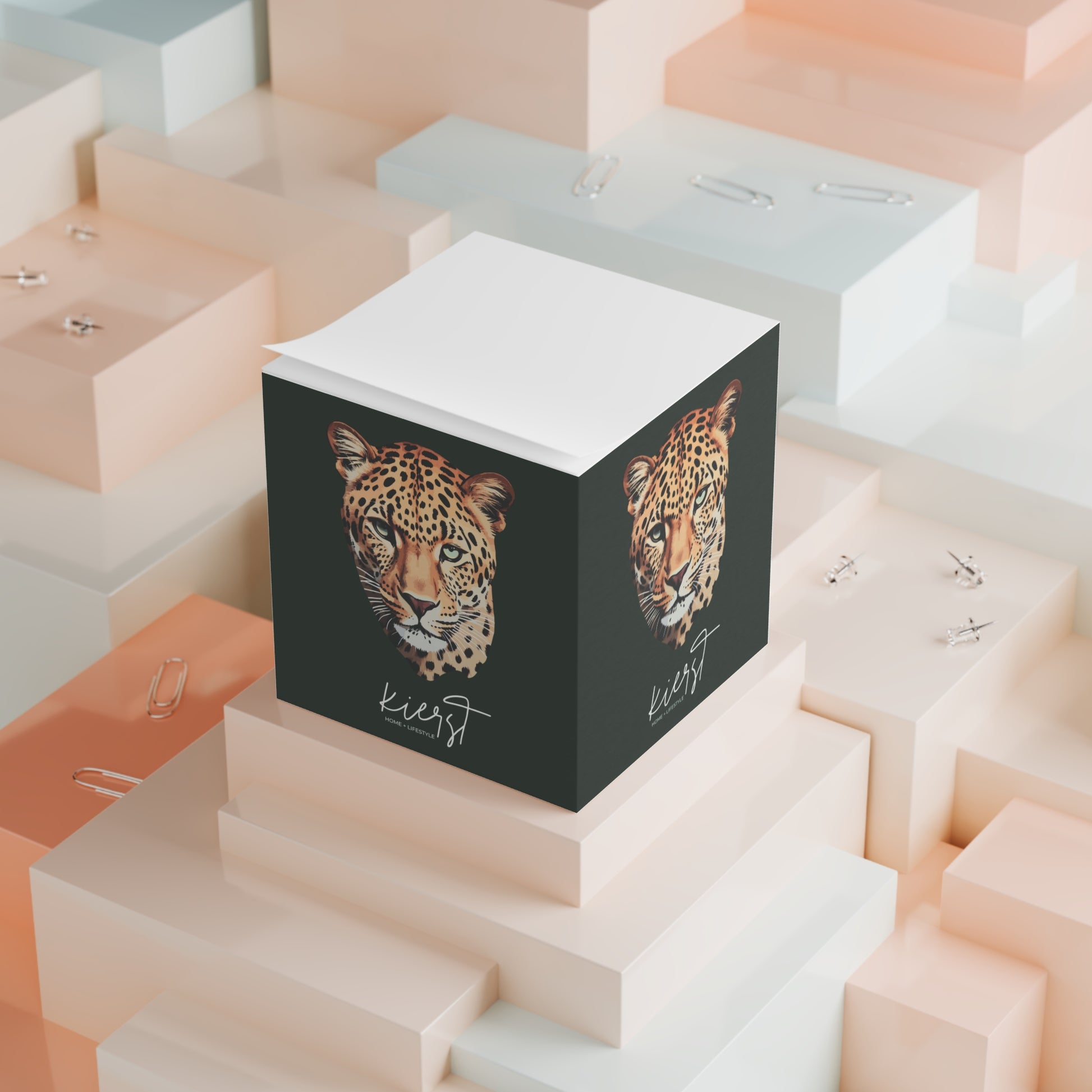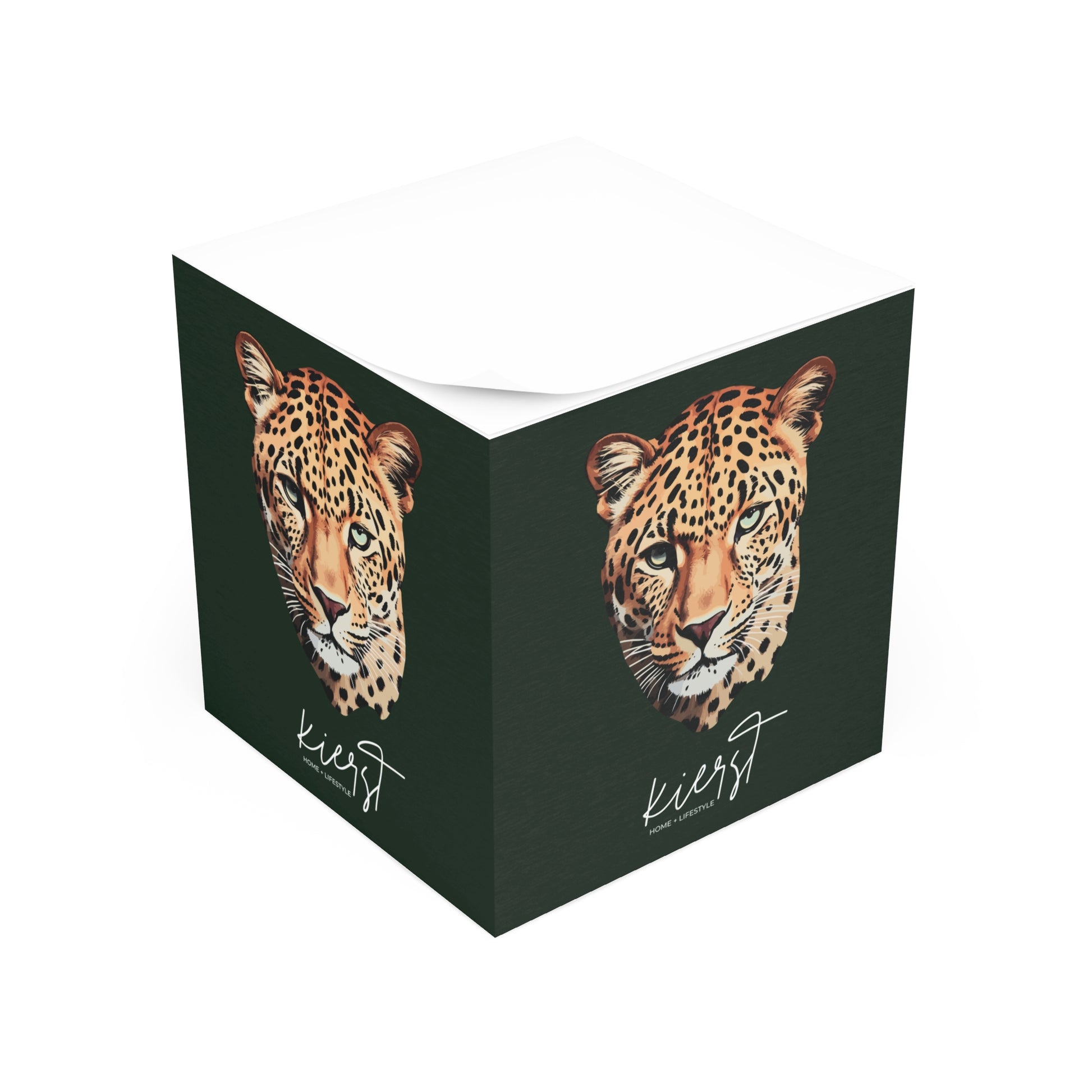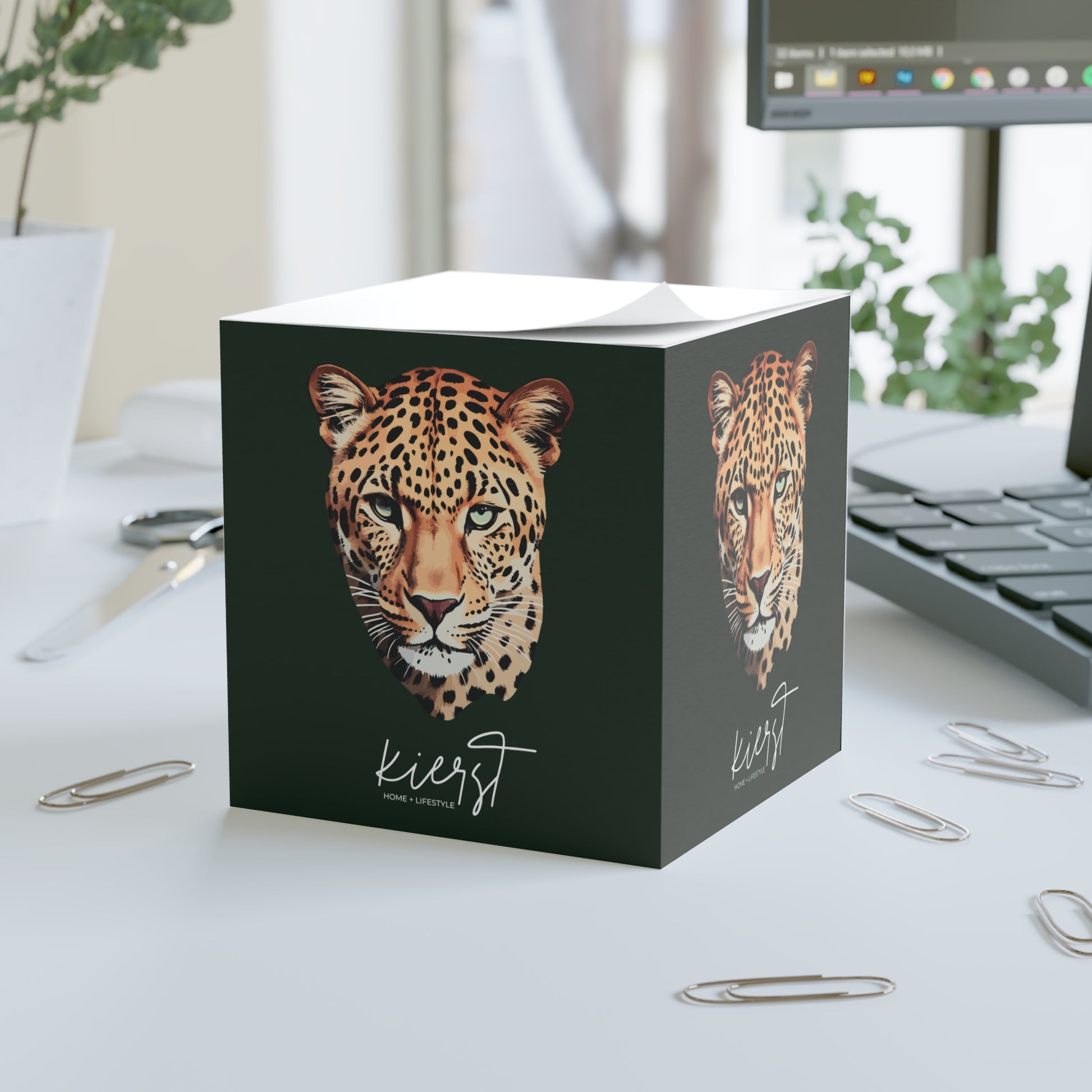 Leopard Head on Signature Midnight Pine Sticky Note Cube | Limited Edition
