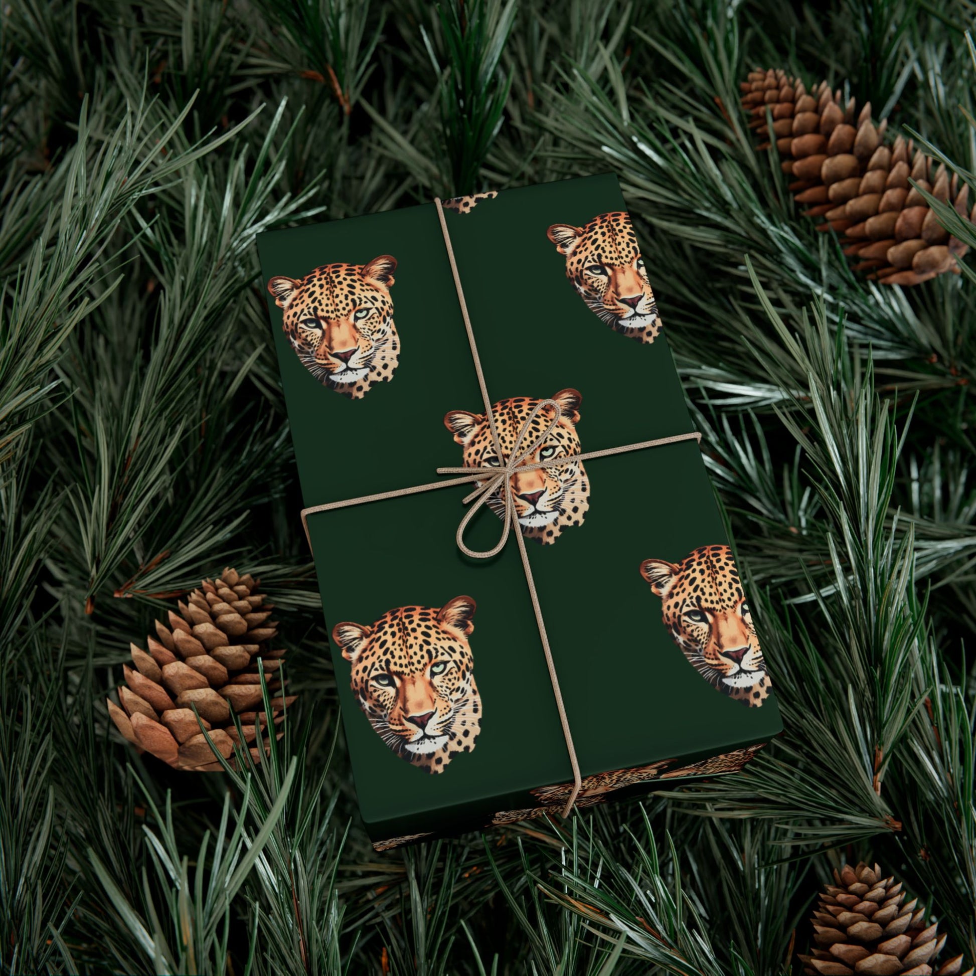 Leopard Head on Signature Midnight Pine Wrapping Paper