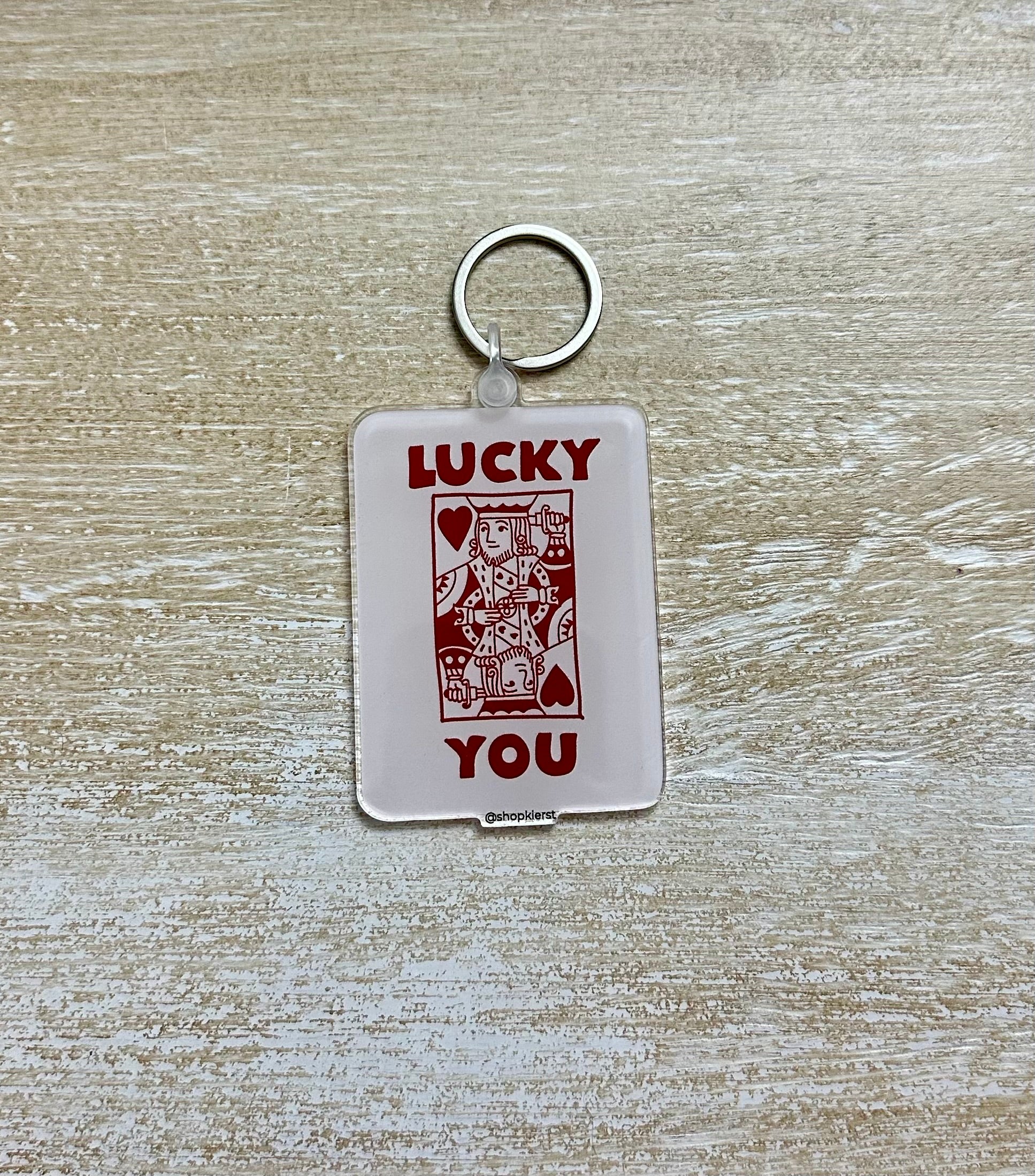 The Lucky King of Hearts Ornament + Keychain is a tongue-in-cheek nod to luck, love, and the art of knowing your worth. Its rich crimson print and soft blush base make it the perfect balance of vintage charm and modern edge — a collectible that stands out without saying a word.