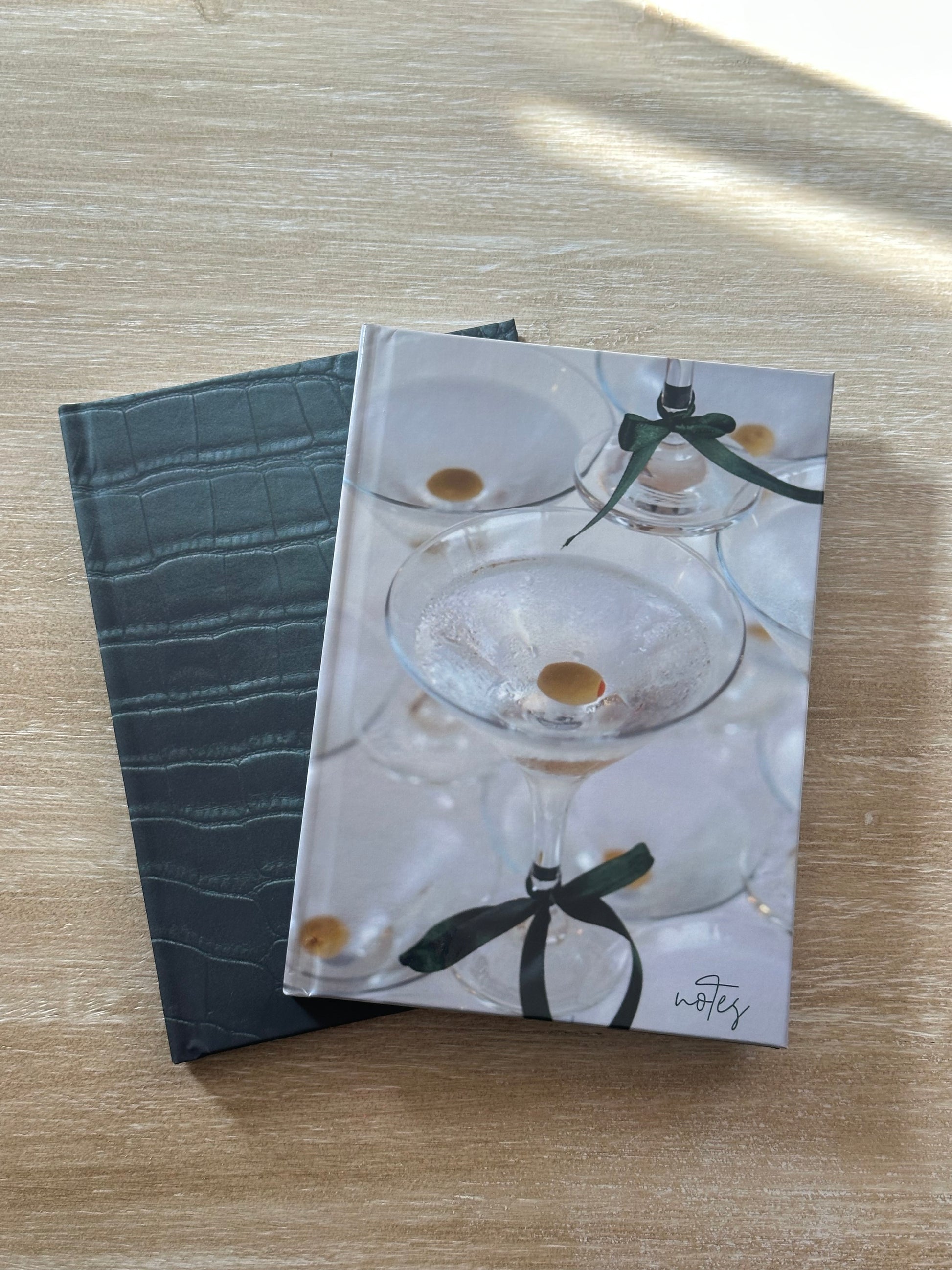 Effortless glamour captured in a glass—Martinis is for the nights that linger and the mornings that inspire. With crisp, chilled glasses and emerald ribbon accents, this hardcover journal embodies celebration, confidence, and timeless style, making it the perfect place to pour your thoughts.
