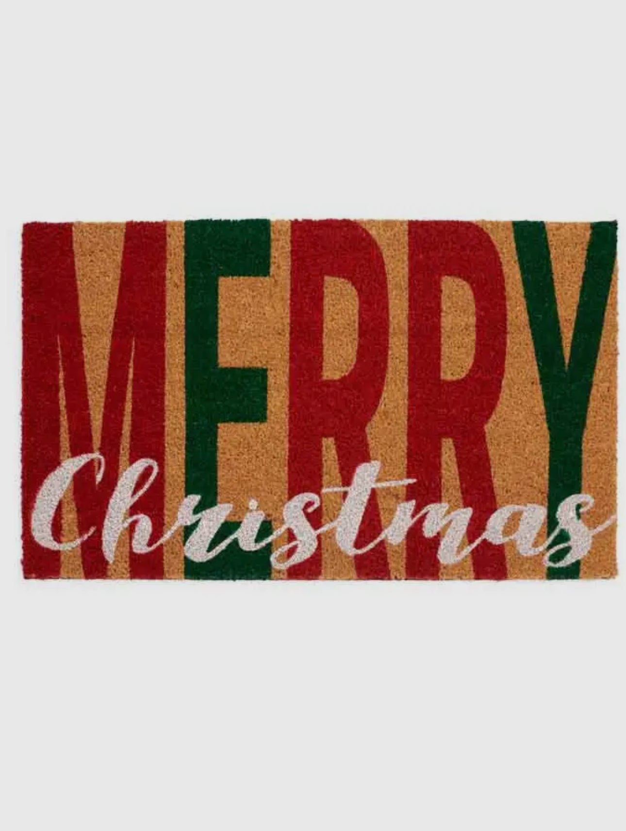 Add a festive touch to your entryway with the Merry Christmas Doormat. Bold red and green lettering meets crisp white script for a timeless, cheerful welcome. This item is available for pre-sale and will ship in early November.