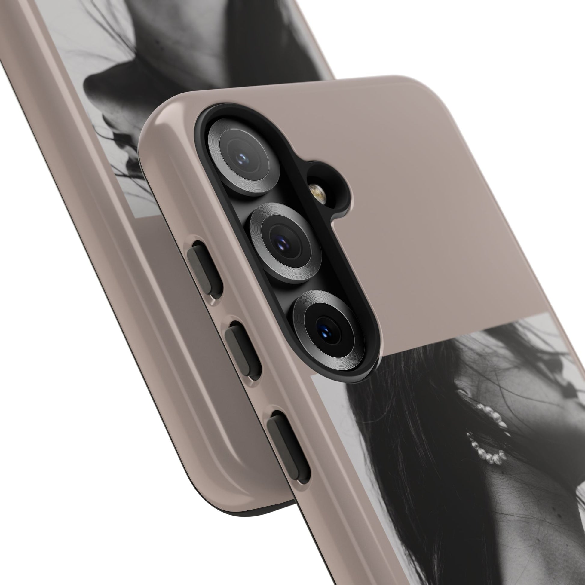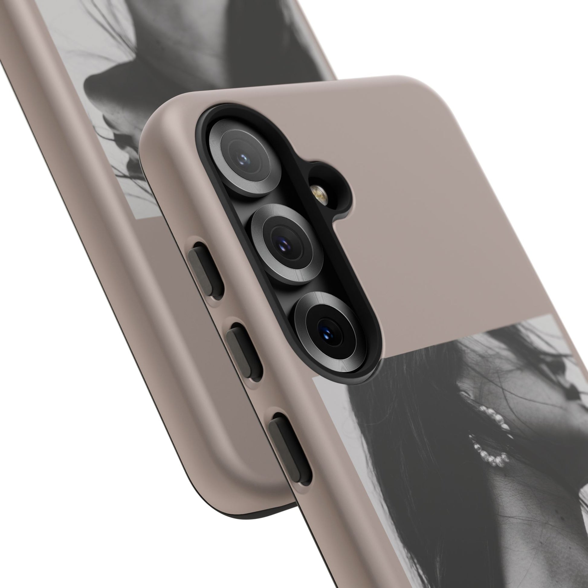 A portrait of quiet luxury. Designed for those who curate their style with intention. This Samsung Galaxy case features a soft taupe backdrop and a striking black-and-white fashion portrait, evoking timeless elegance and editorial allure. It’s not just a phone case—it’s a moment captured.
