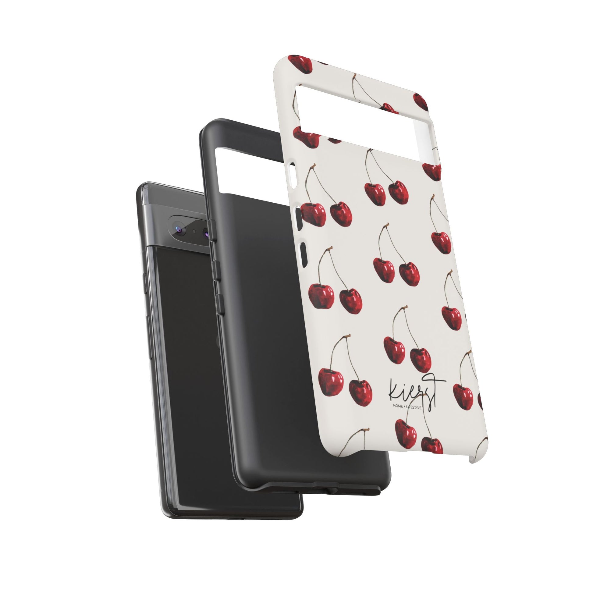 Sultry Minimalism Meets Everyday Utility. This moody cherry print is anything but playful. Deep red stems and saturated cherry tones pop against a soft bone-white base, creating the perfect blend of contrast and sophistication. Designed for clients who curate their style with intention, this Google Pixel case adds a quiet boldness to your tech lineup. Not part of the kierst limited edition fruit collection—this design stands alone in its elegance.