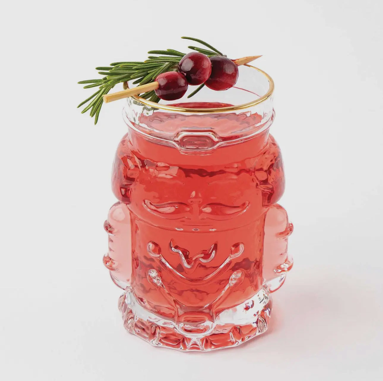 Elevate your holiday entertaining with the Nutcracker Drinking Glass — where festive design meets understated luxury. Crafted from clear glass with a gold-rimmed edge, this sculptural piece features an embossed nutcracker motif that catches the light beautifully with every pour. Available for presale - shipping early November.