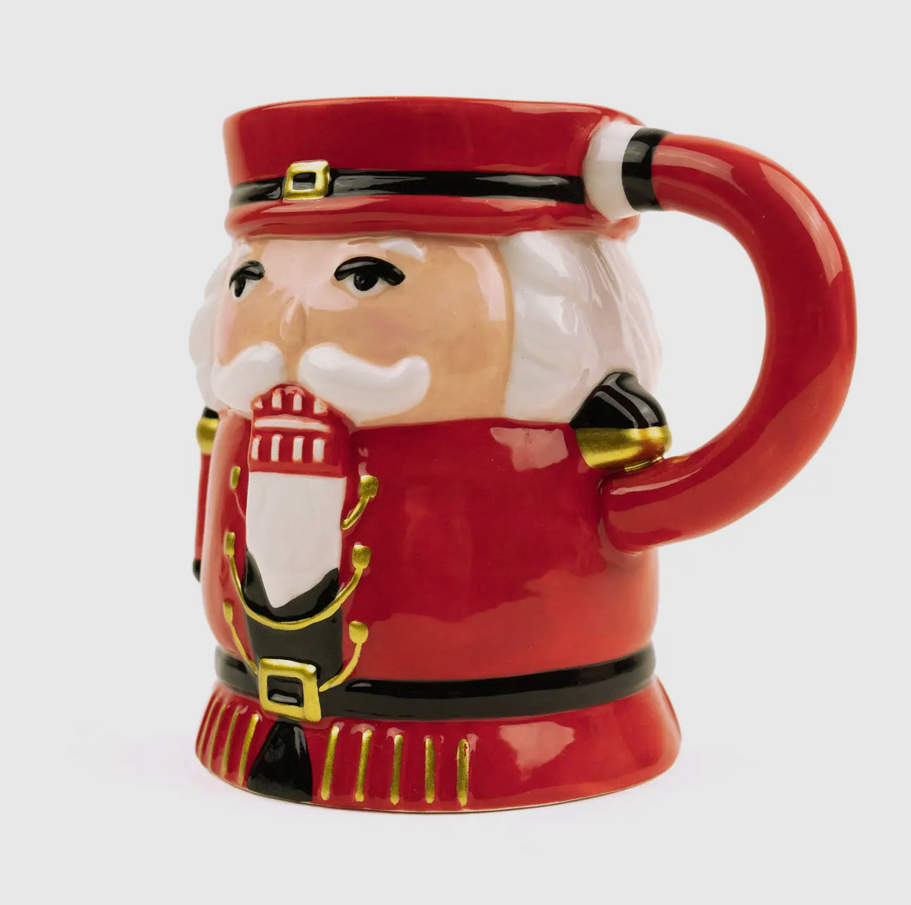 A bold classic with a polished finish — the Red Nutcracker Mug brings timeless holiday charm to every sip. Detailed in rich red with gold accents, this sculpted ceramic piece channels the elegance of traditional nutcracker design through kierst’s modern, texture-forward lens. Available for pre-sale — ships in early November.