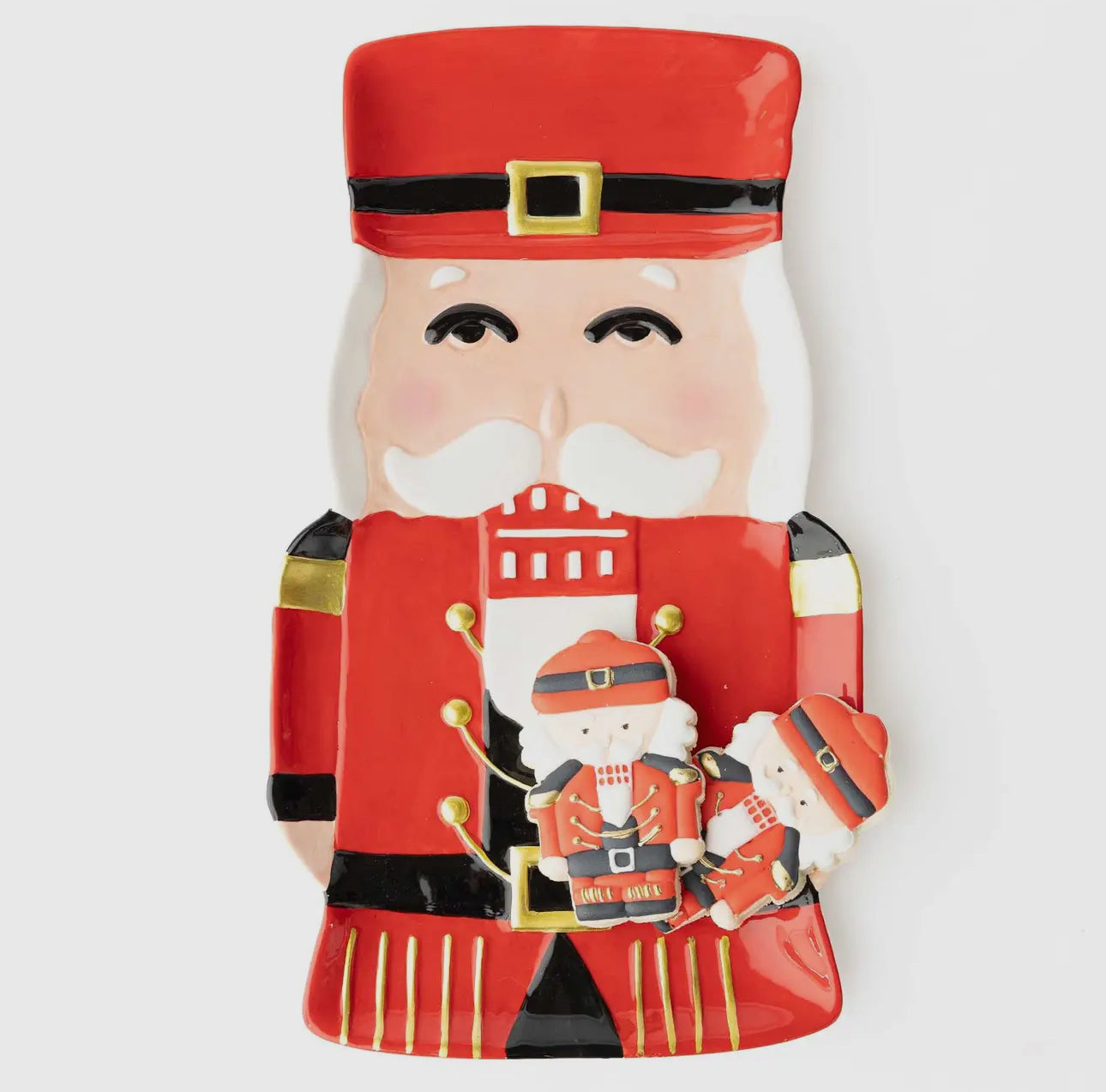 Classic meets contemporary in the Red Nutcracker Platter, a bold yet elegant statement piece for your holiday gatherings. Hand-painted with rich red tones, black detailing, and gold accents, this platter captures the nostalgia of Christmas with a modern, polished finish. Available for pre-sale — ships in early November.