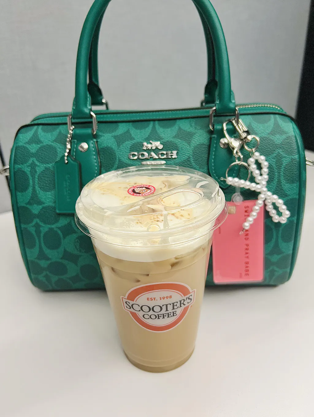kierst Signature Pink Accessories for a coordinated, playful look. The Black Crown Ornament + Keychain or Martini II to give the best vibe.