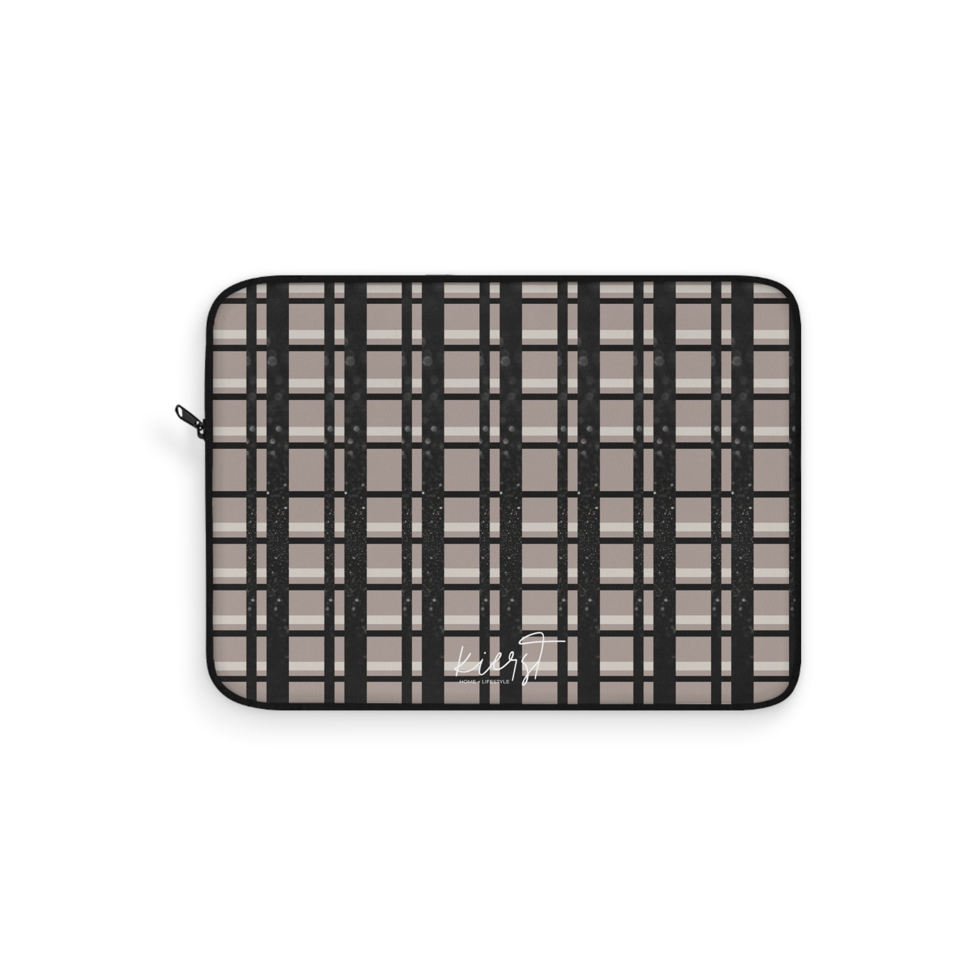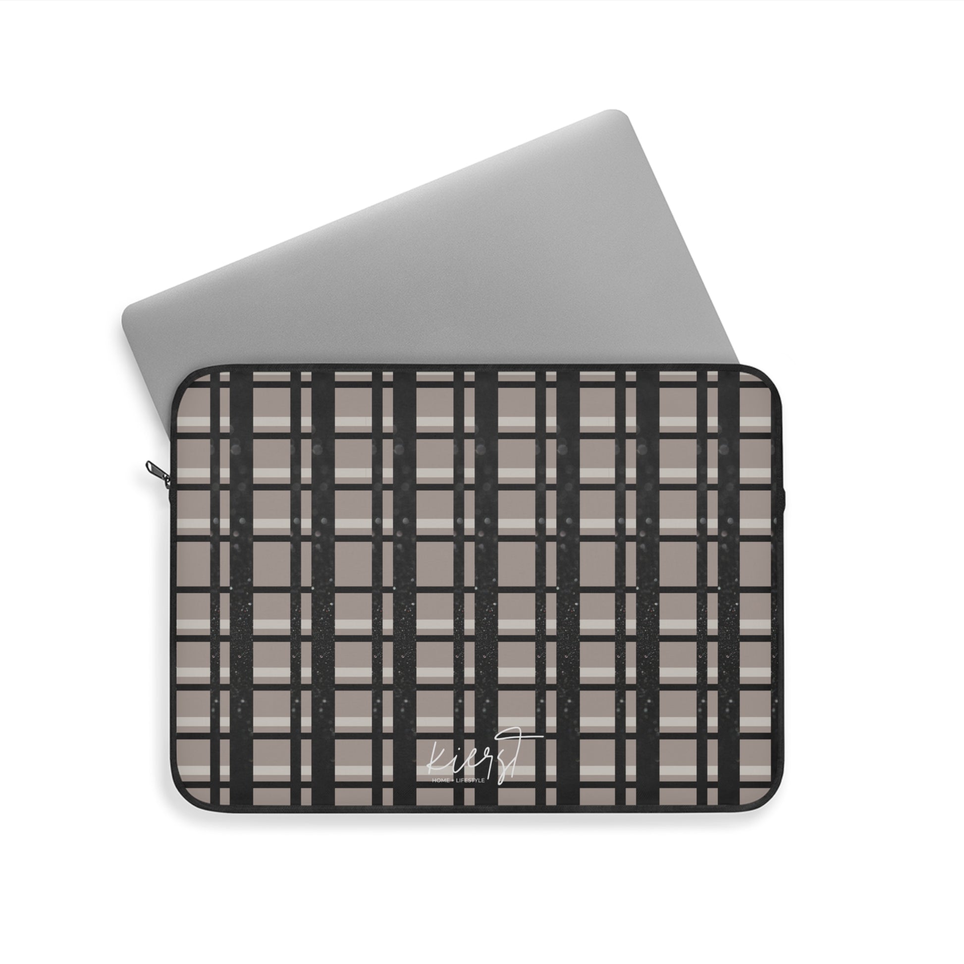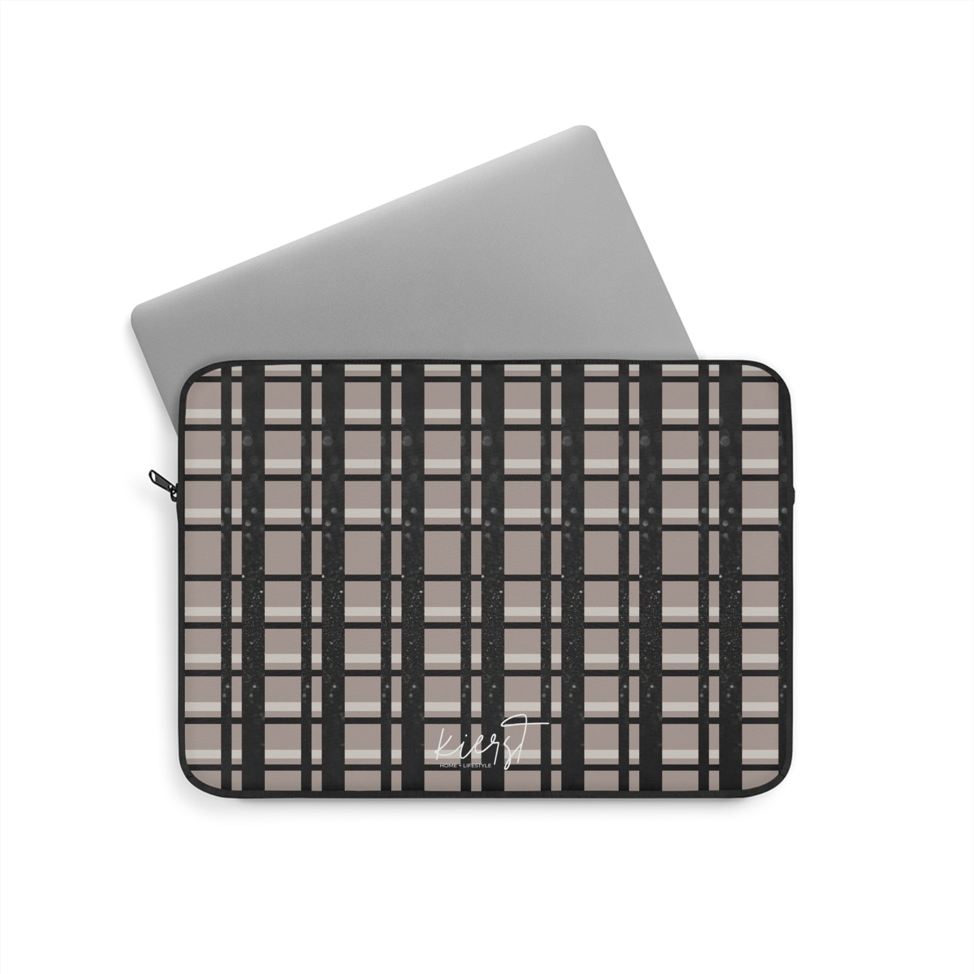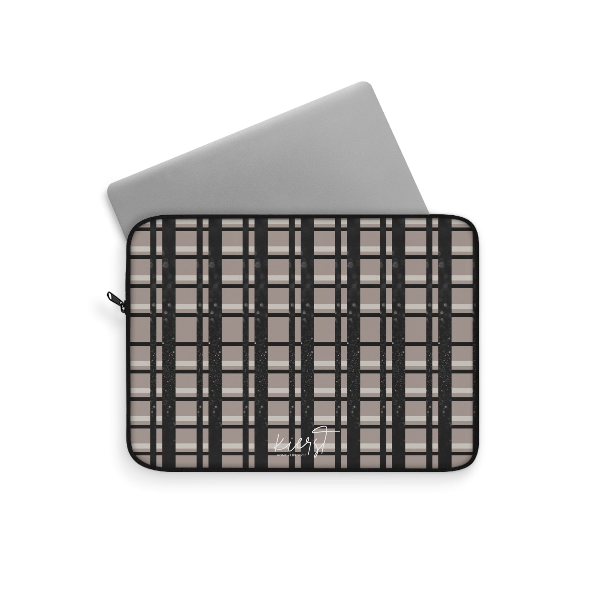 Signature Taupe & Black Printed Glitter Plaid Laptop Sleeve | Classic with a Twist