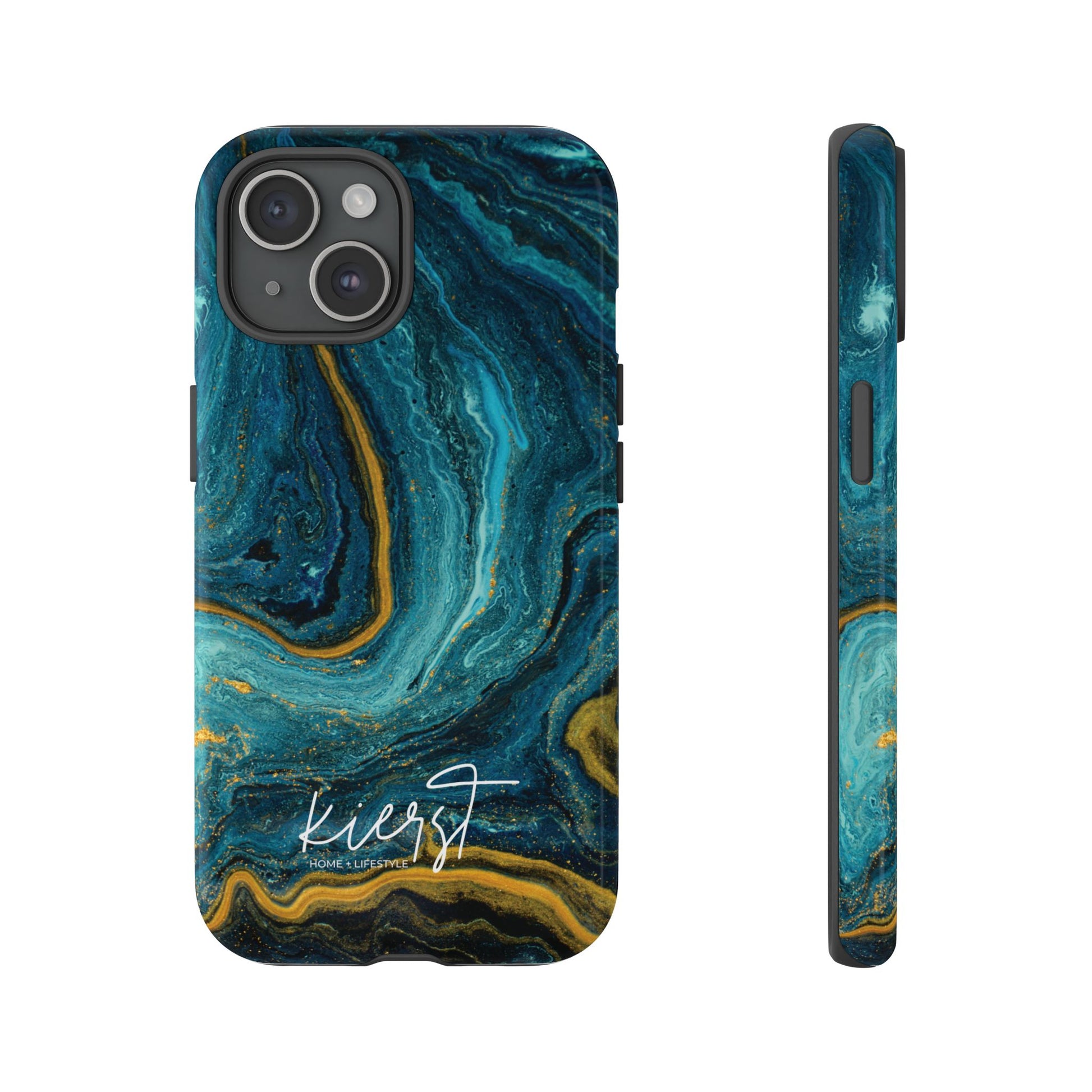 Swirled Boldness, Everyday Luxury. An expressive statement piece for your phone. This marbled design layers deep ocean blues, shimmering teals, and warm gold tones for a look that feels equal parts abstract art and refined elegance. Crafted for durability, designed for style—the perfect blend of protection and personality.