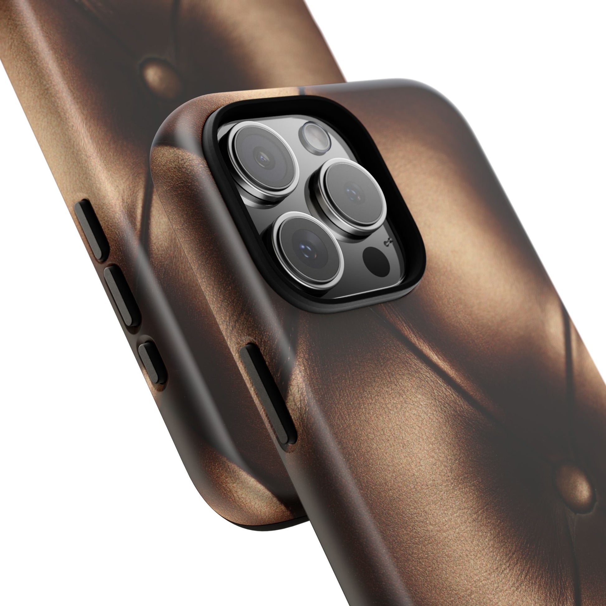 Bold. Iconic. Instantly refined. The Bronze Tufted iPhone Case channels the timeless appeal of luxe upholstery, wrapping your phone in rich bronze tones and tufted detail. It’s a design that balances opulence with functionality—an everyday accessory with the look of classic luxury.