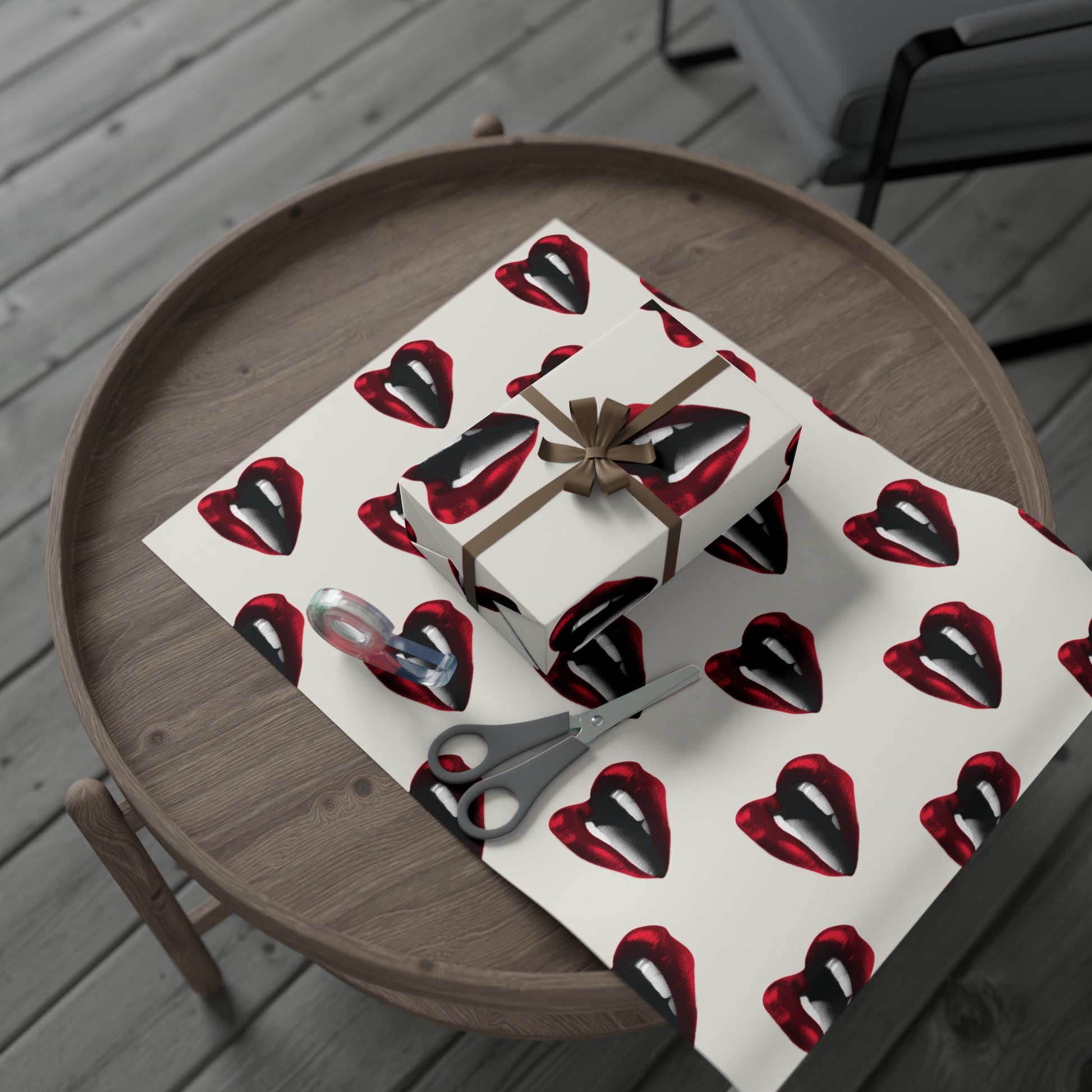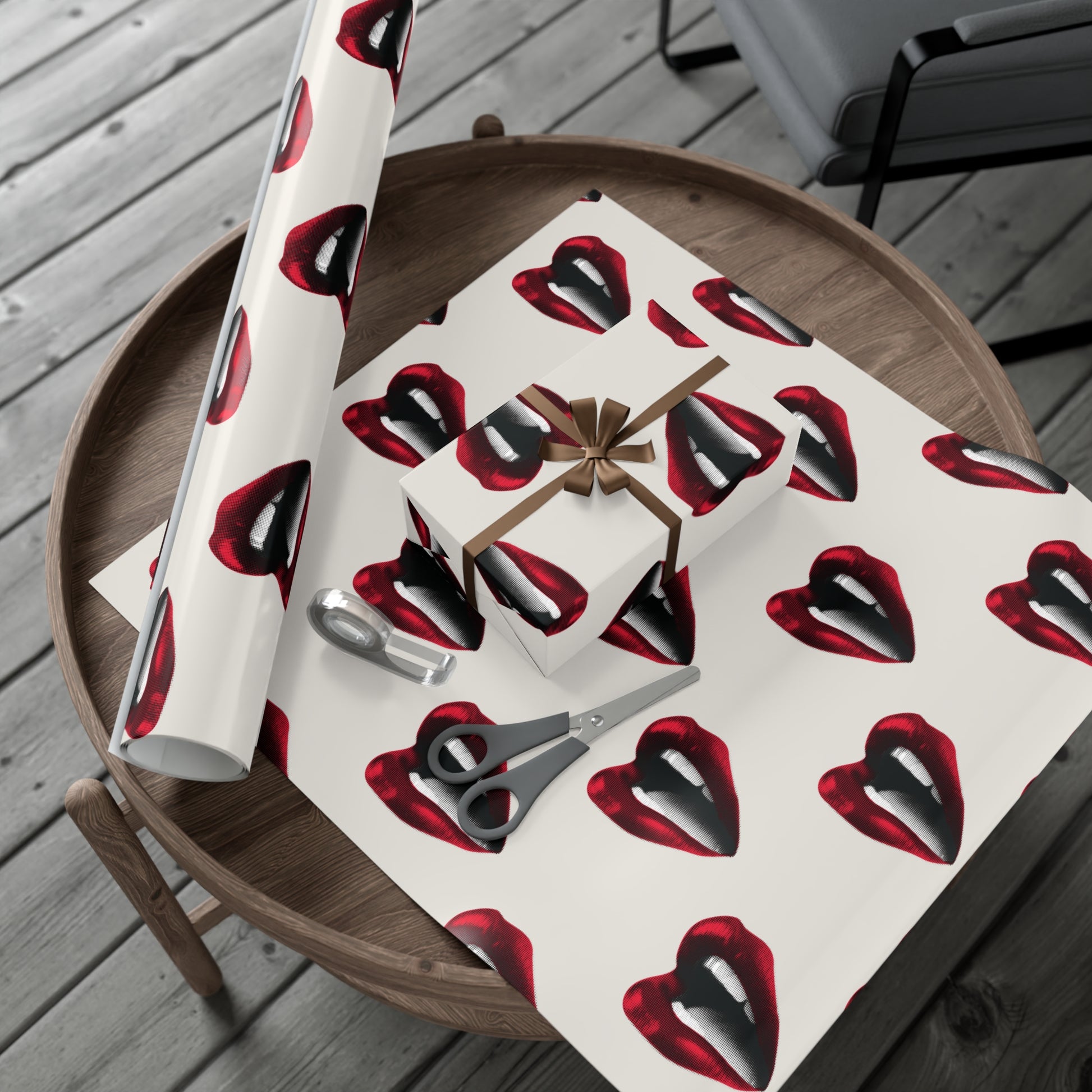 Vintage Red Lips Gift Wrapping Paper – Glossy Pop Art Mouths on Bone Color