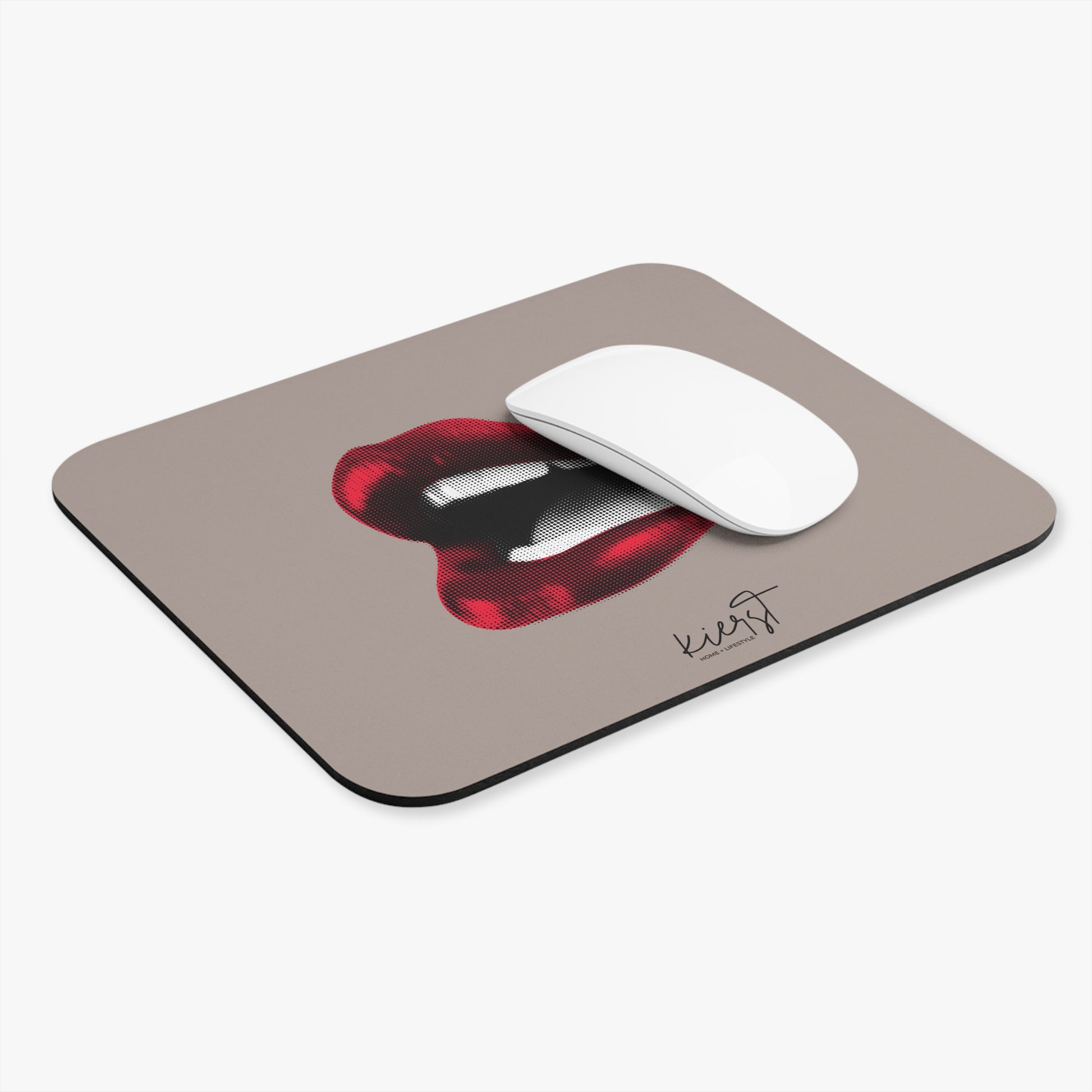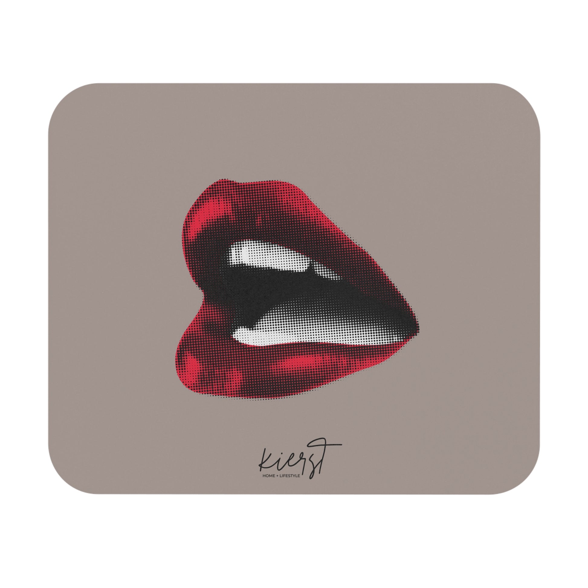 Vintage Red Lips on Taupe Mouse Pad | Bold Desk Statement