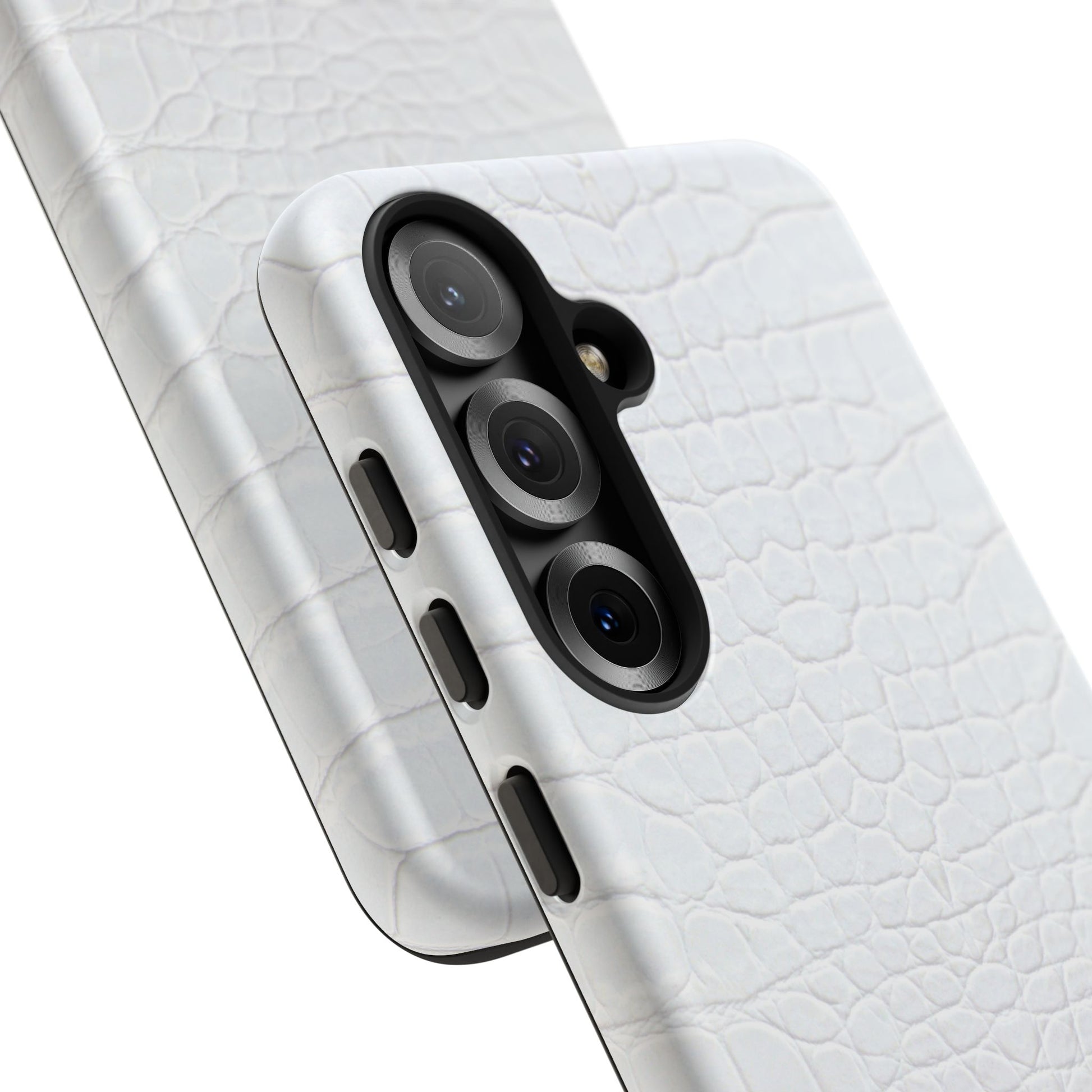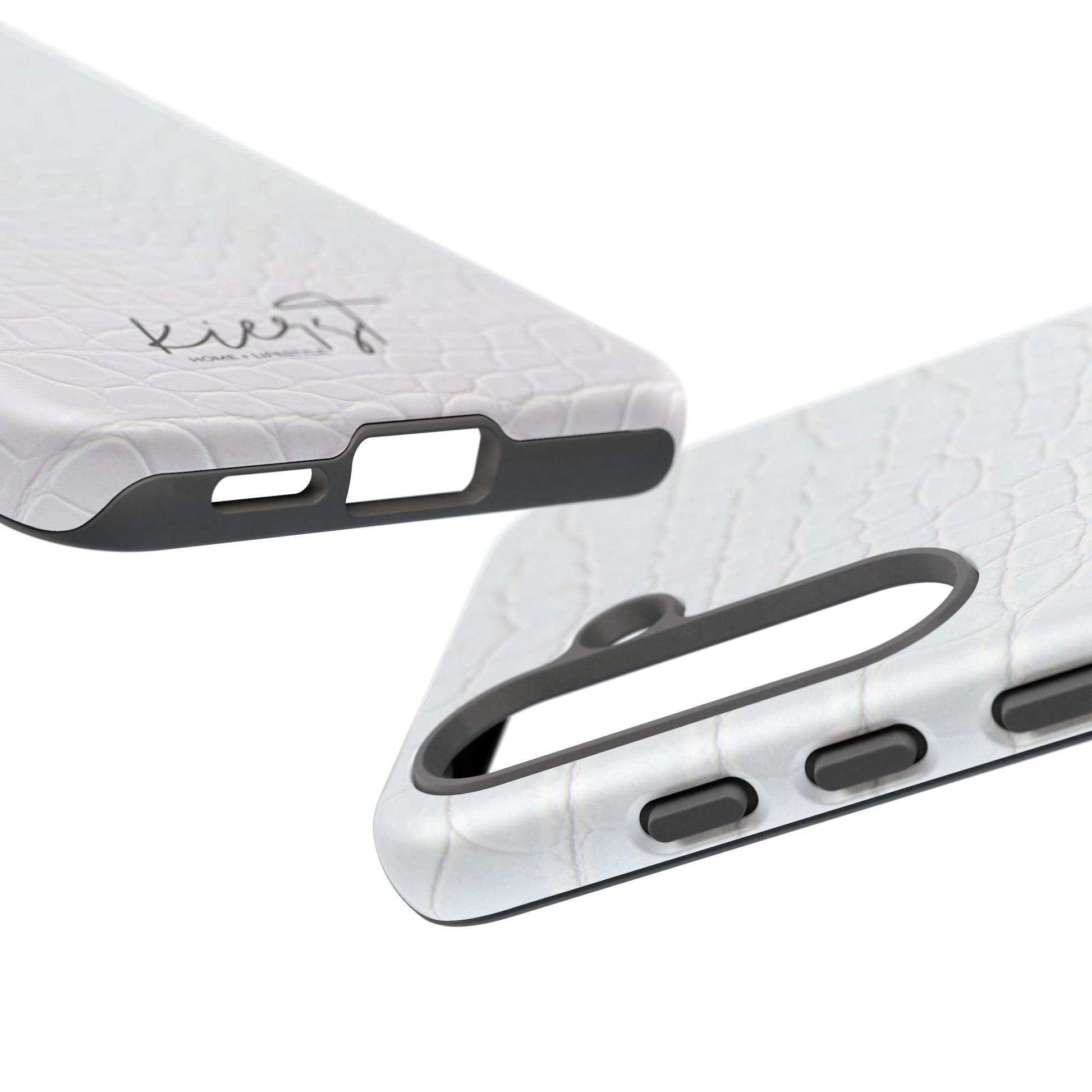 Designed to mirror the confidence of a well-tailored wardrobe, this white alligator-printed case (flat image, not textured) brings sleek structure and polished sophistication to your tech. It’s crisp, bold, and unapologetically elevated—just like the kierst client.