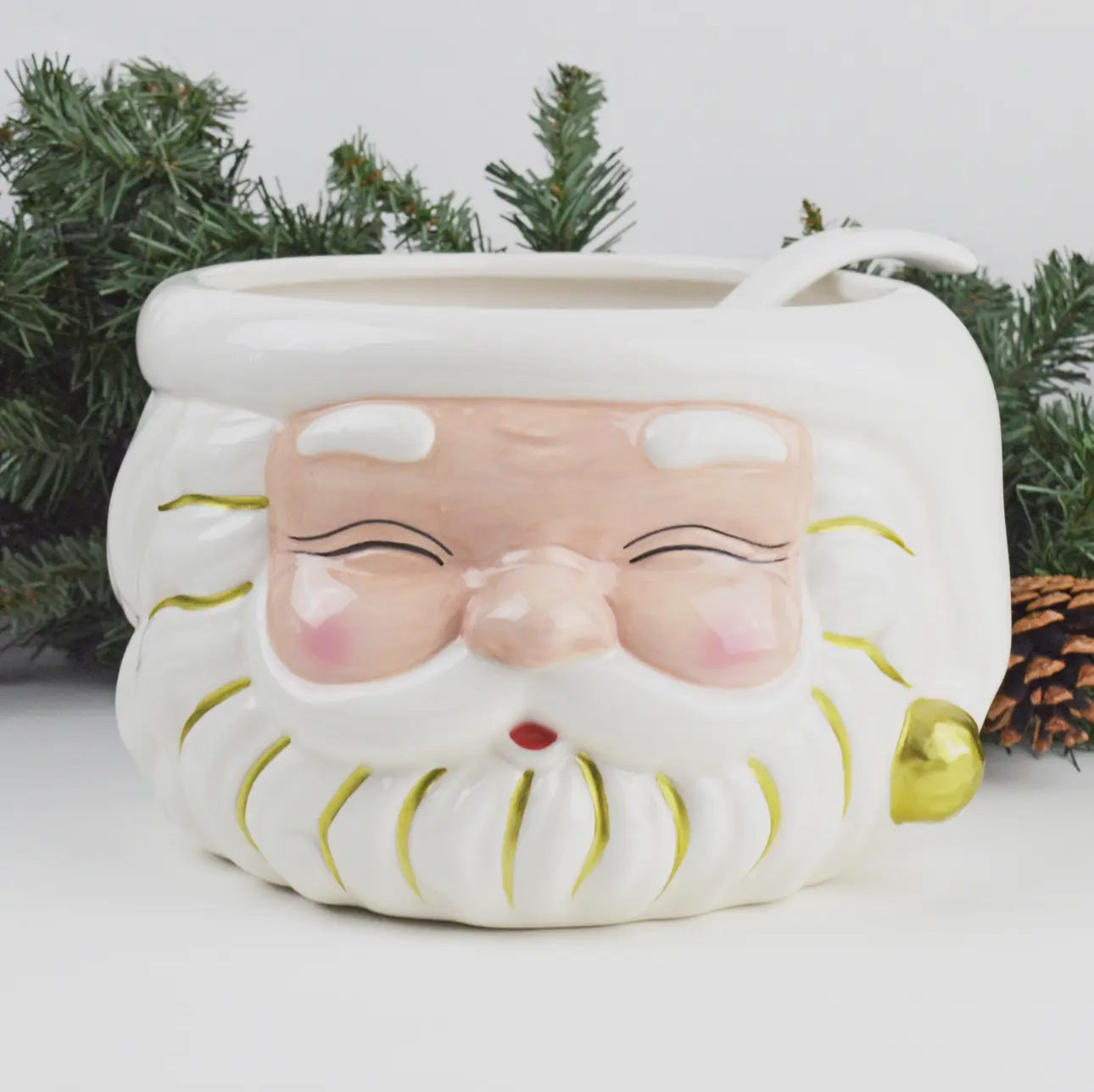 Pairs beautifully with the Red and Pink Santa Punch Bowls for a cohesive trio or alongside matching Santa Dessert Plates for a coordinated serving display. Style with greenery and gold flatware for an understated yet luxurious holiday presentation.